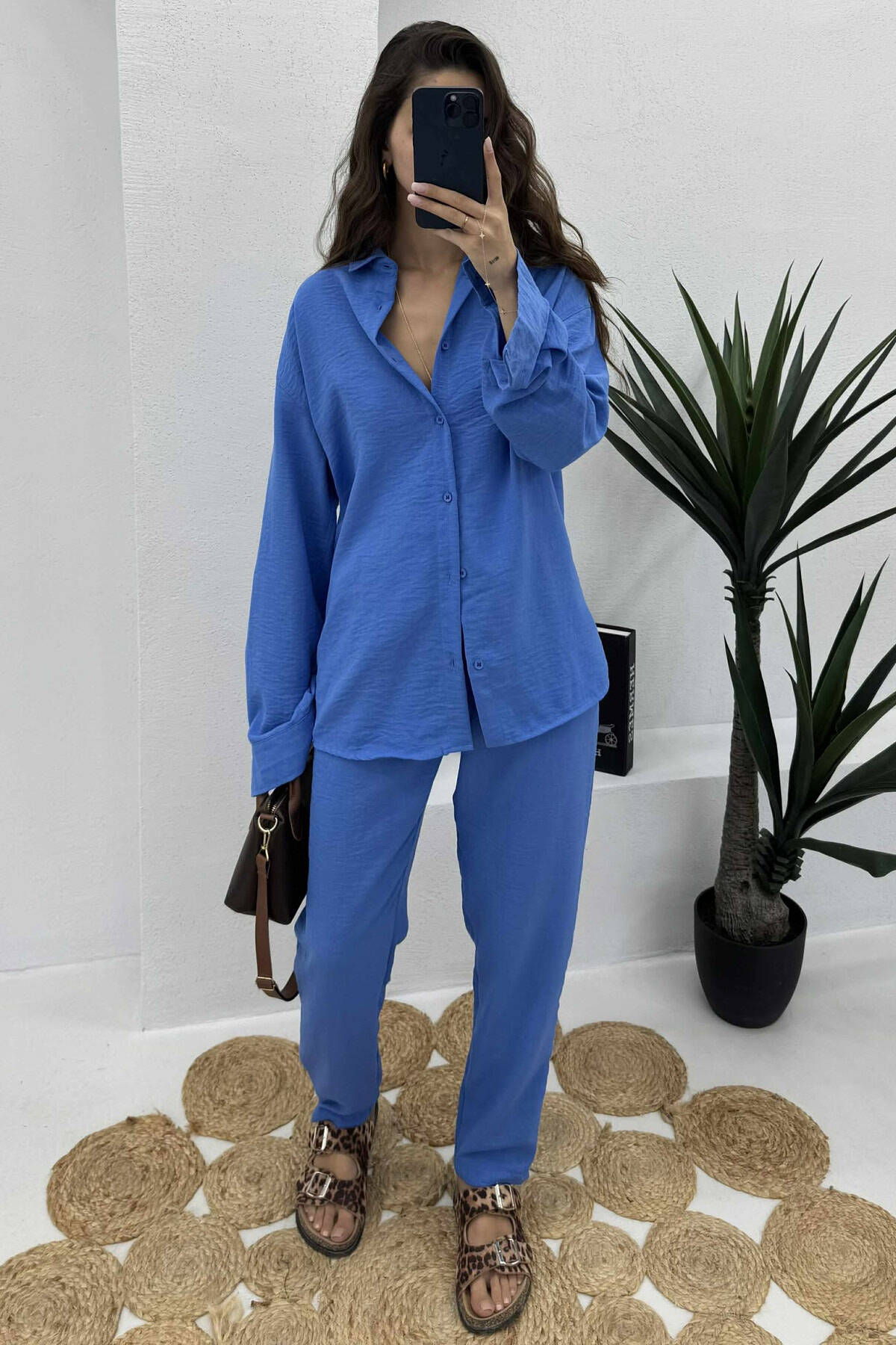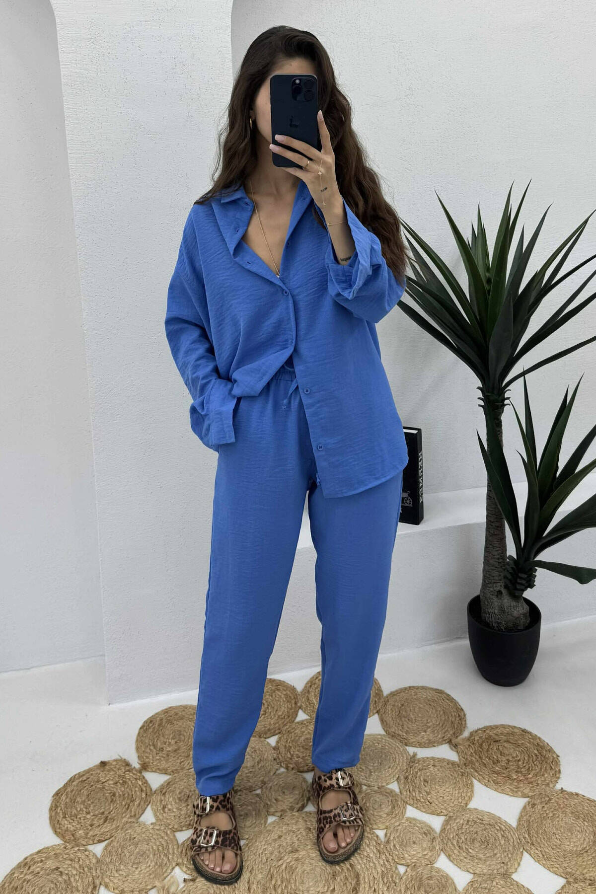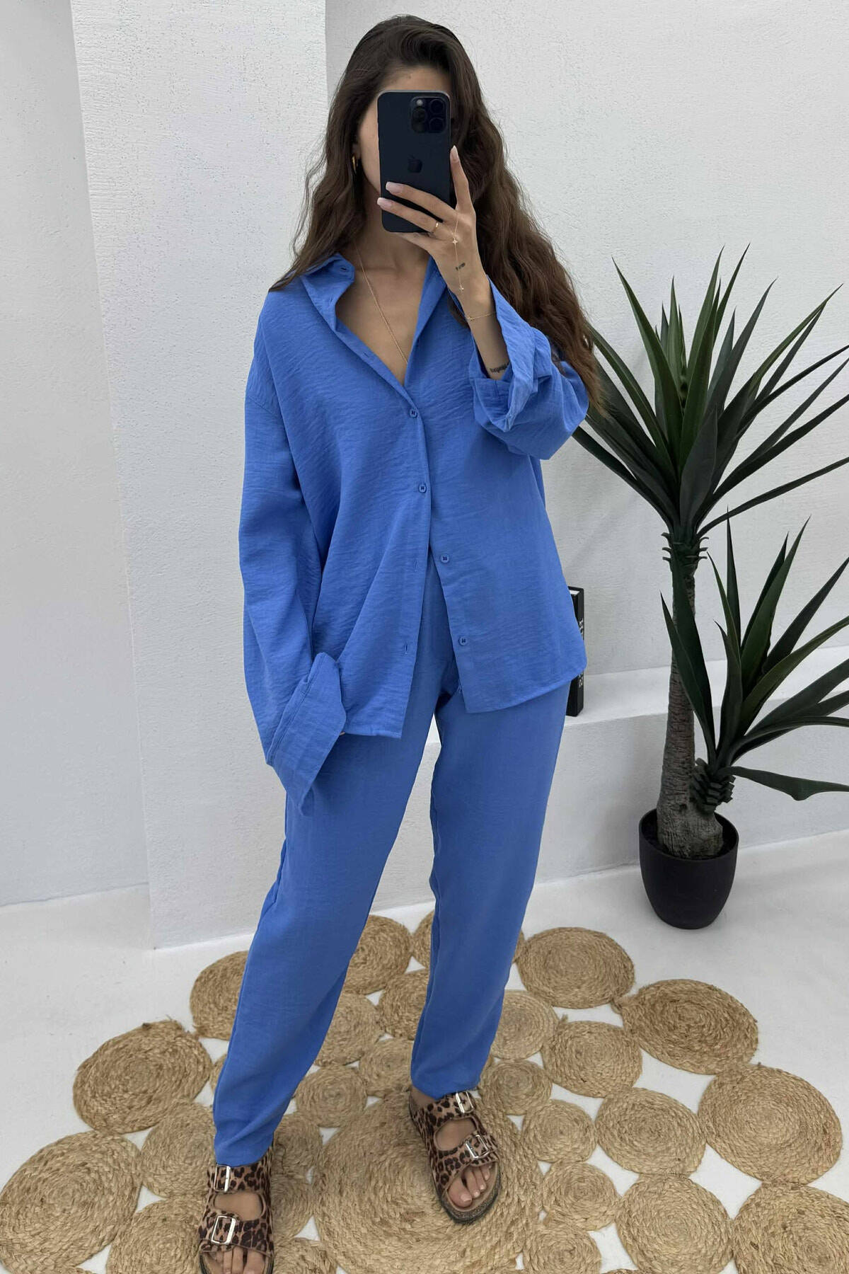 SET NJË NGJYRËSH KËMISHË+PANTALLONA PËR FEMRA NË NGJYRË BLU