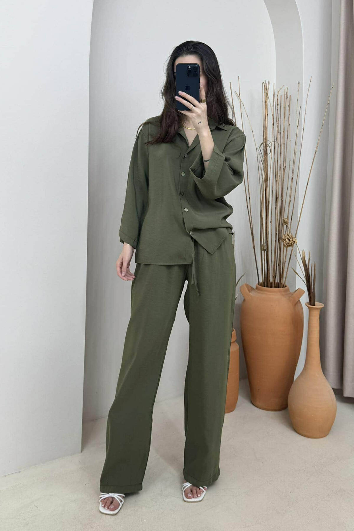 SET NJË NGJYRËSH KËMISHË+PANTALLONA PËR FEMRA NË NGJYRË JESHILE