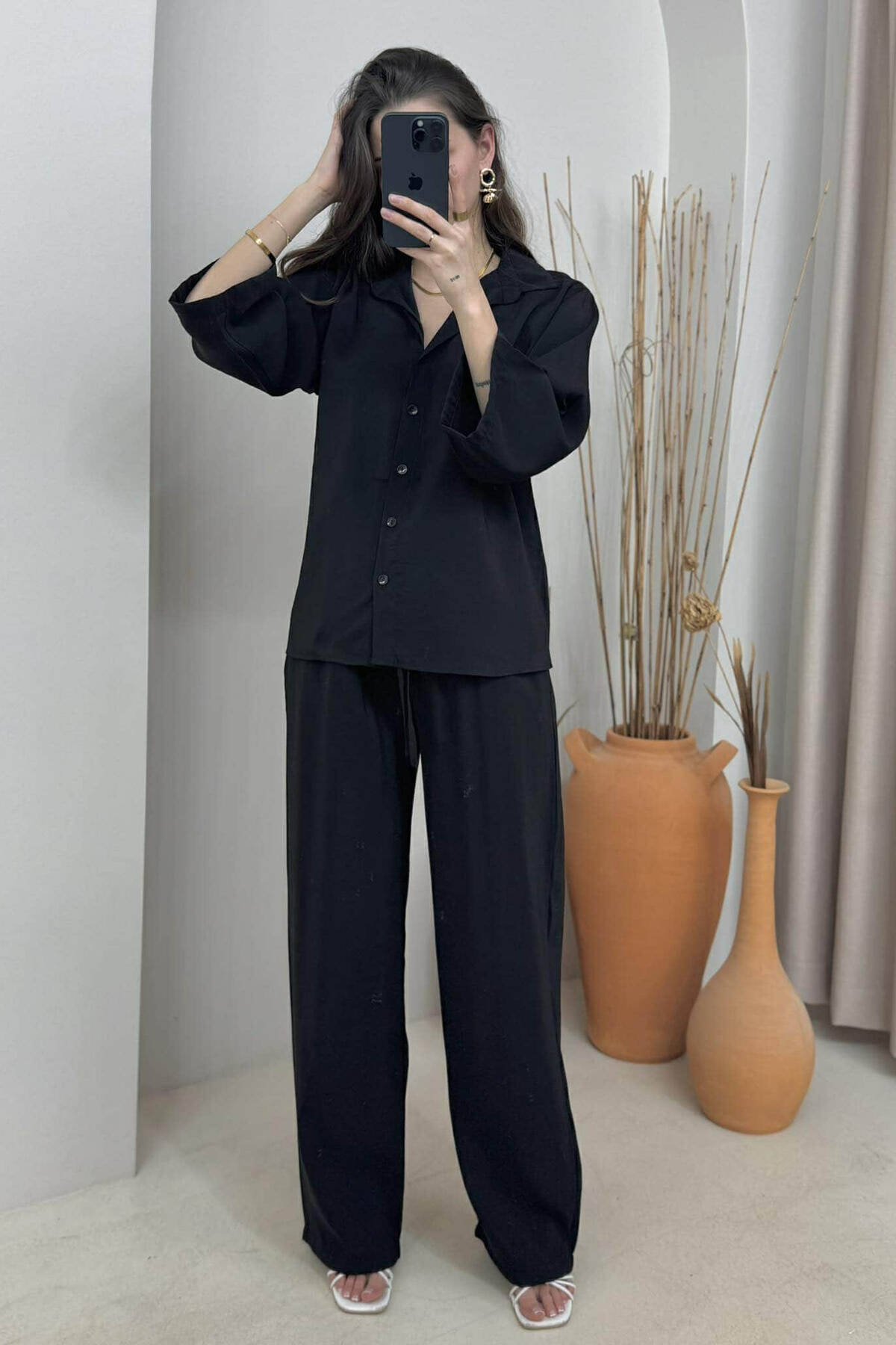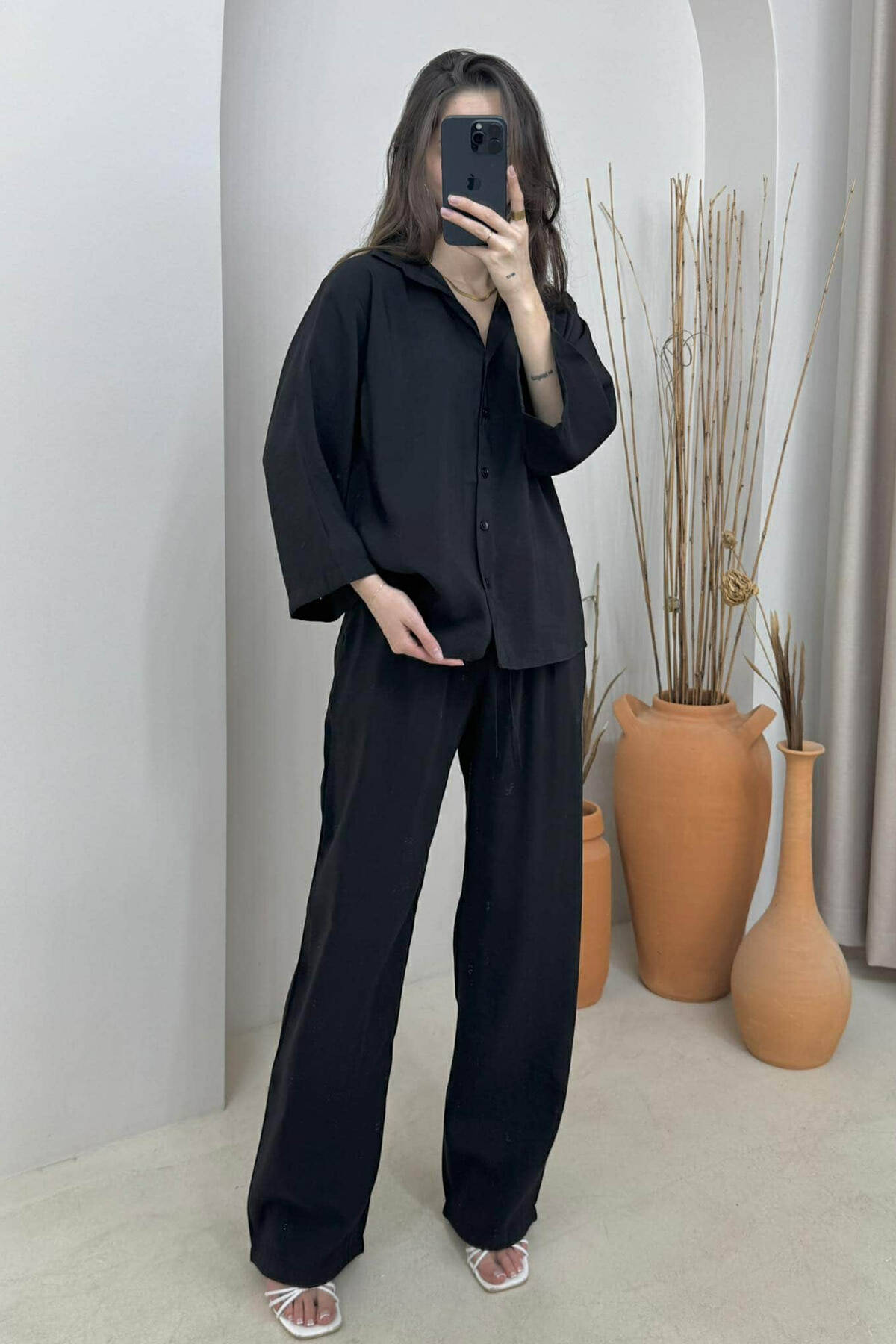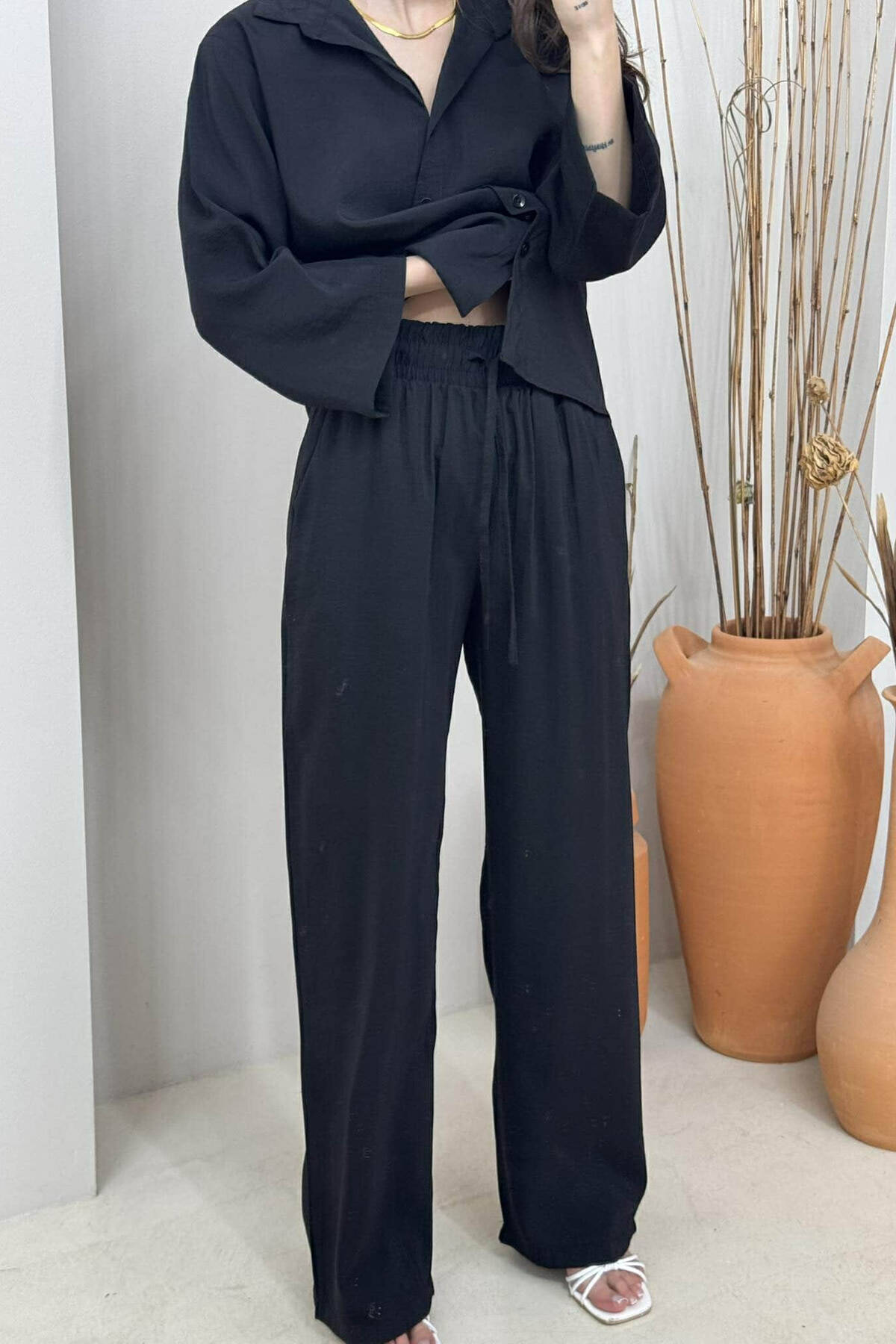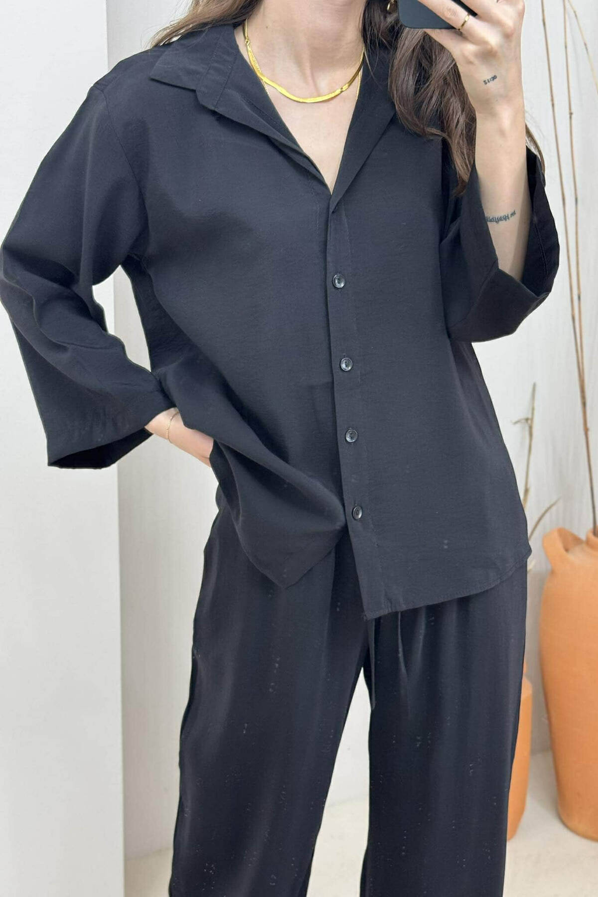 SET NJË NGJYRËSH KËMISHË+PANTALLONA PËR FEMRA NË NGJYRËN E ZEZË