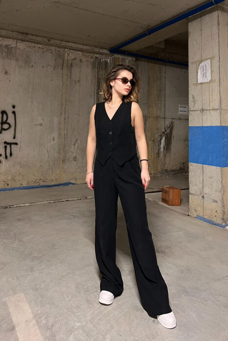 CROPPED JACKET+TANK TOP+TROUSERS 3 PIECE WOMEN SET BLACK/ E ZEZE