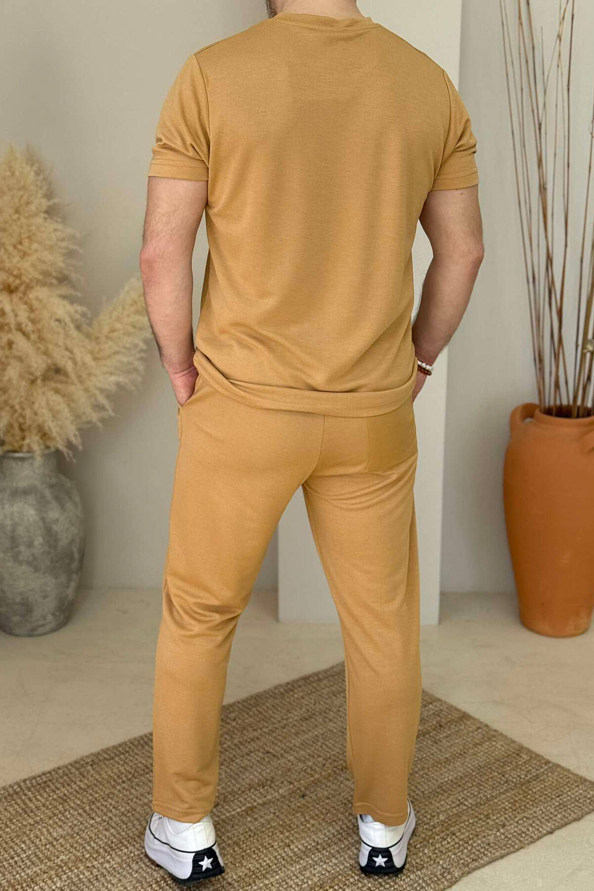 SET NJË NGJYRËSH T-SHIRT+TUTA PËR MESHKUJ NË NGJYRË KAFE E ZBARDHUR