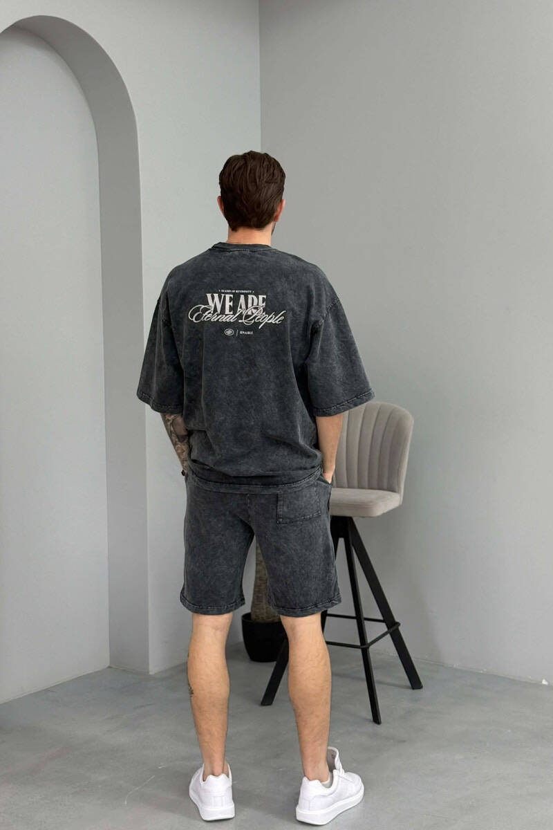 SET NJE NGJYRESH T-SHIRT ME SHKRIME + TUTA TE SHKURTRA PER MESHKUJ NE NGJYRE GRI TE ERRET