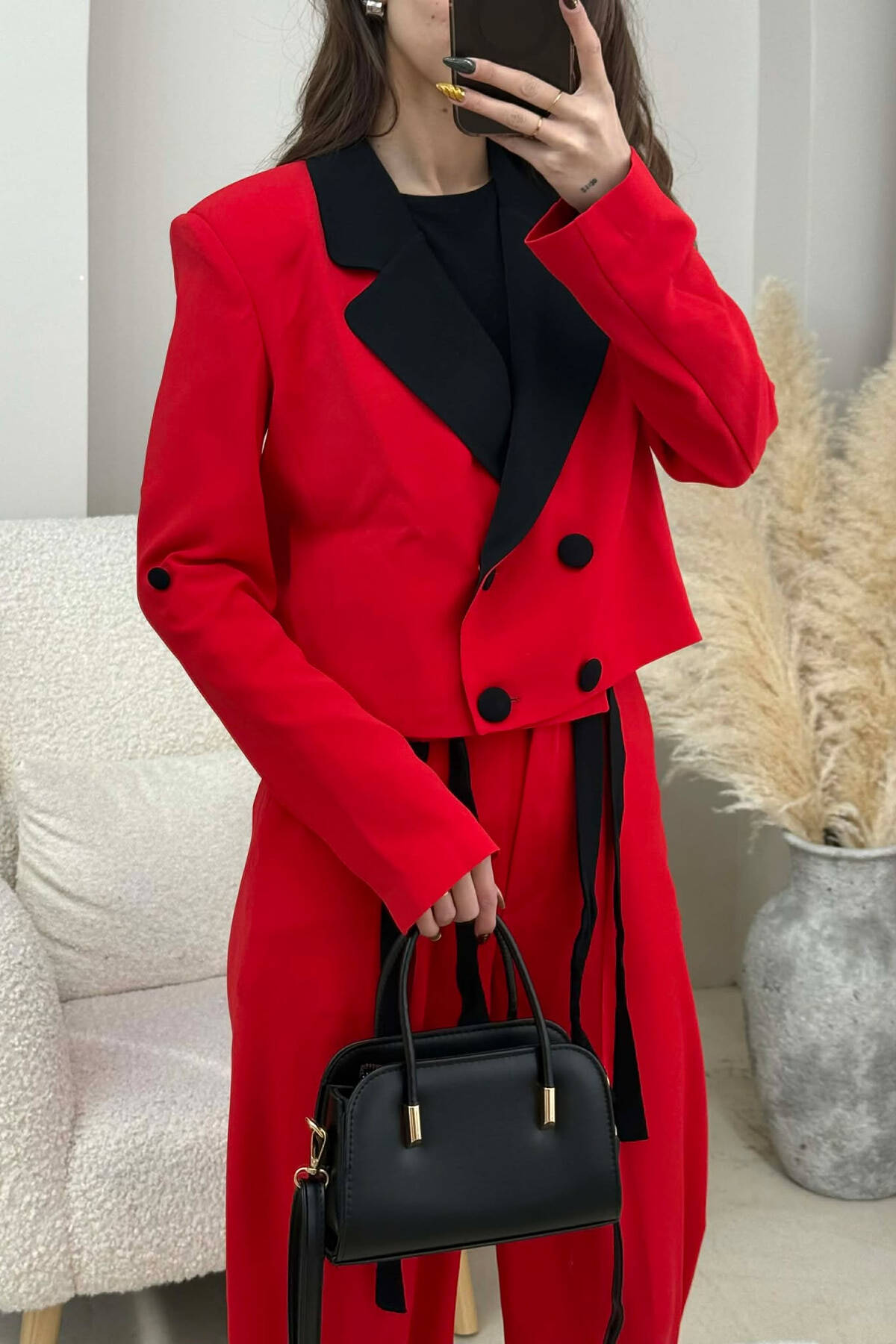 SET NJE NGJYRESH XHAKETE E SHKURTER+PANTALLONA PER FEMRA NE NGJYRE TE KUQE