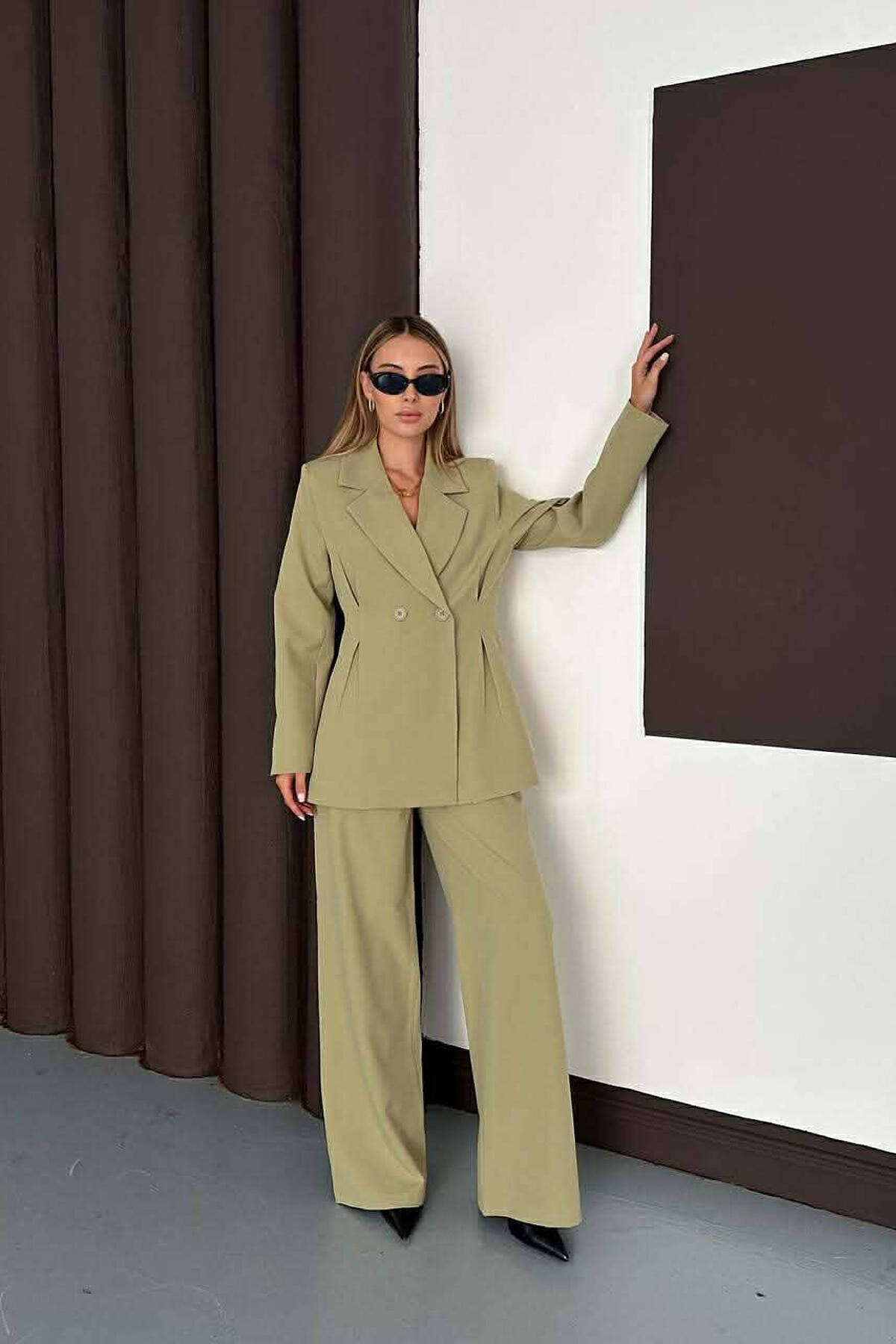 SET NJË NGJYRESH XHAKETE KLASIKE+PANTALLONA PËR FEMRA NE NGJYRE JESHILE