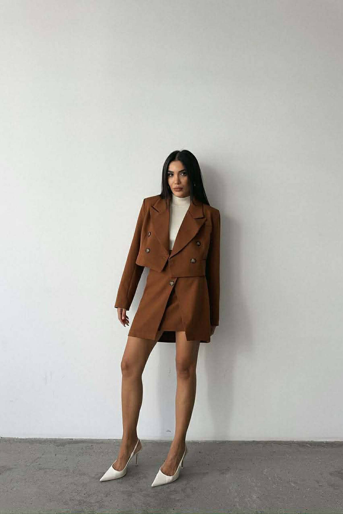 ONE COLOR CROPPED JACKET+SKIRT WOMEN SET LIGHT GREY/GZ
