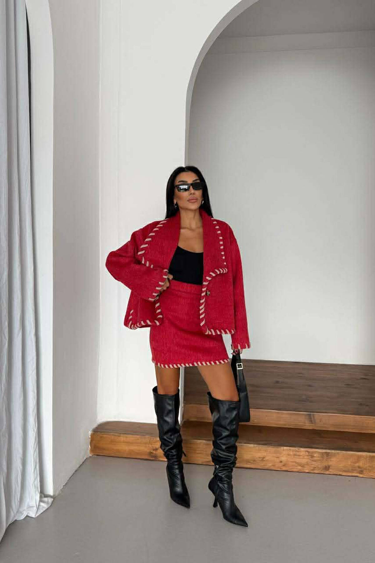 BELT DETAIL SWEATER +TROUSERS WOMAN SET BLACK/ E ZEZE