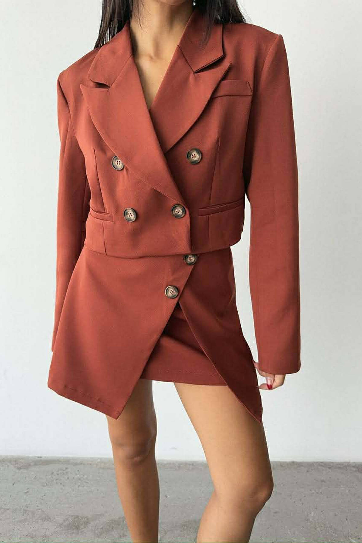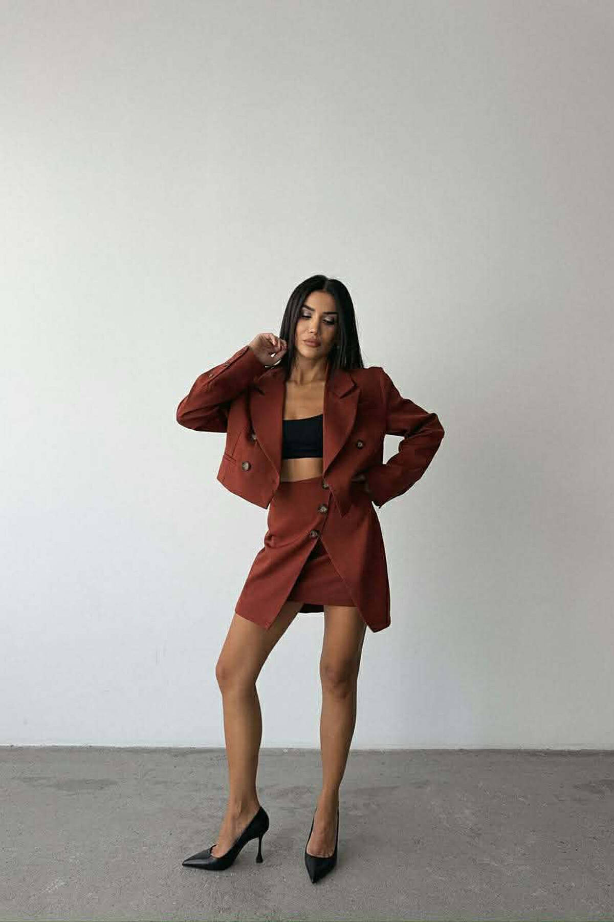 ONE COLOR CROPPED JACKET+SKIRT WOMEN SET LIGHT GREY/GZ