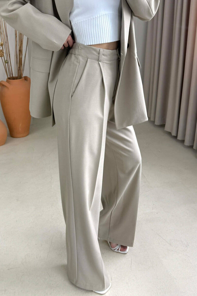 SET NJË NGJYRESH XHAKETE KLASIKE+PANTALLONA PËR FEMRA NE NGJYRE BEZHE