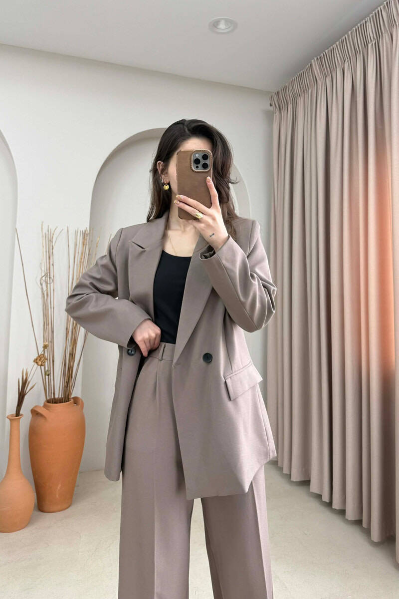 SET NJË NGJYRESH XHAKETE KLASIKE+PANTALLONA PËR FEMRA NE NGJYRE KAFE TE ZBARDHUR