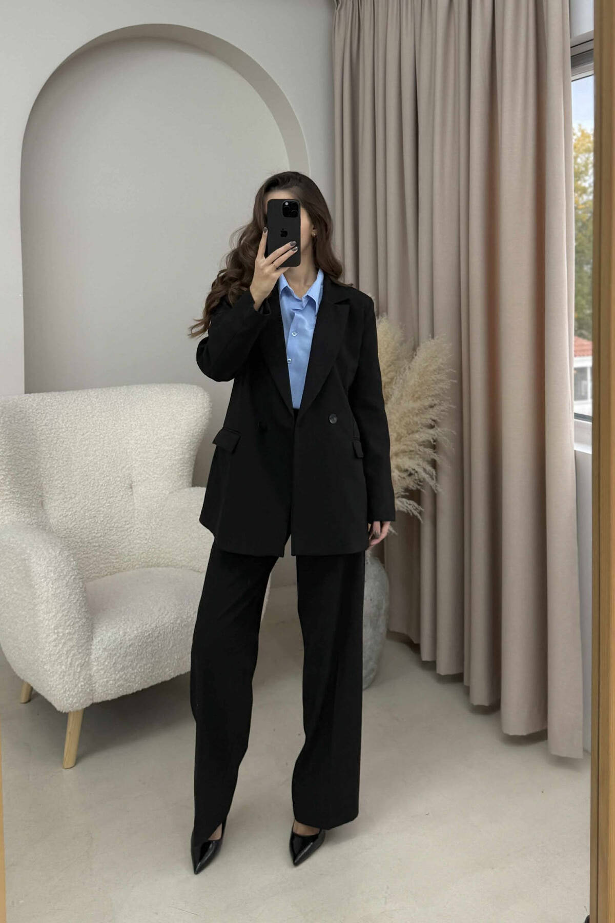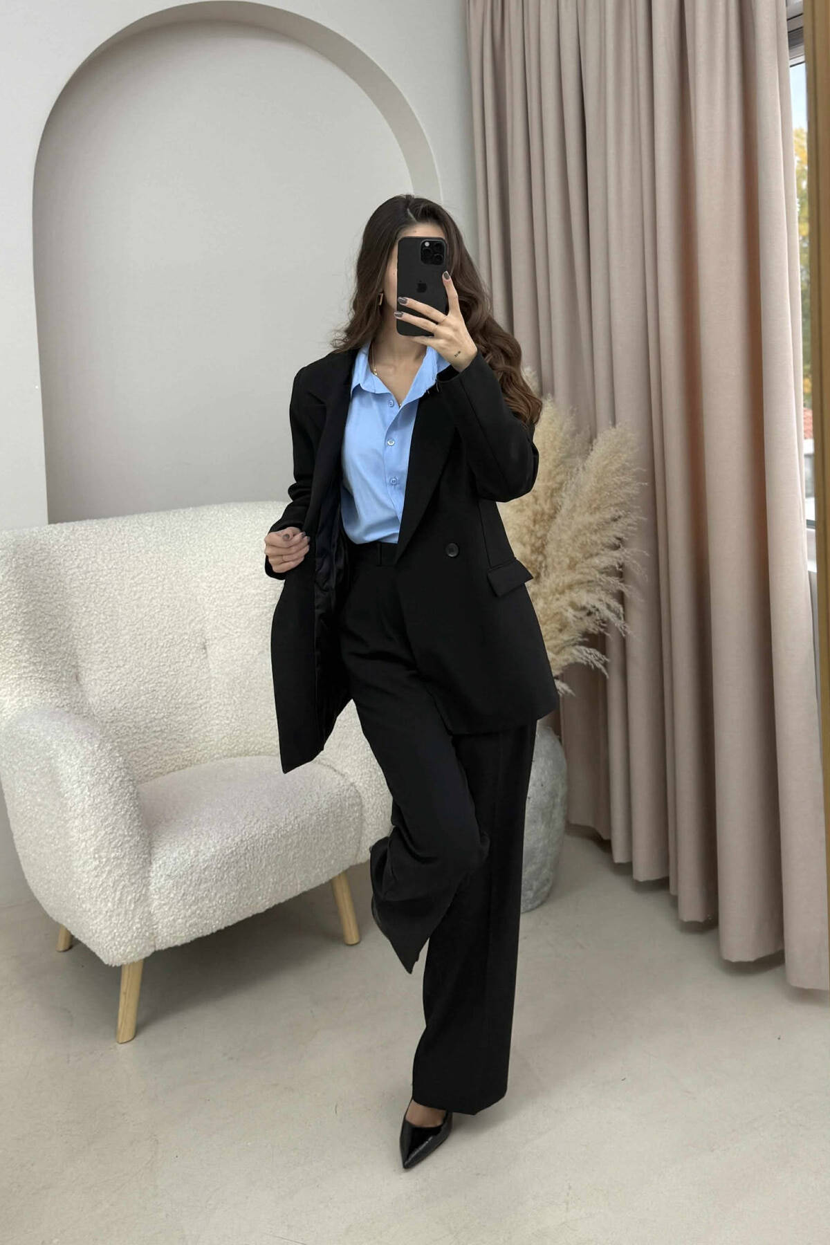SET NJË NGJYRËSH XHAKETË KLASIKE+PANTALLONA PËR FEMRA NË NGJYRË TË ZEZË