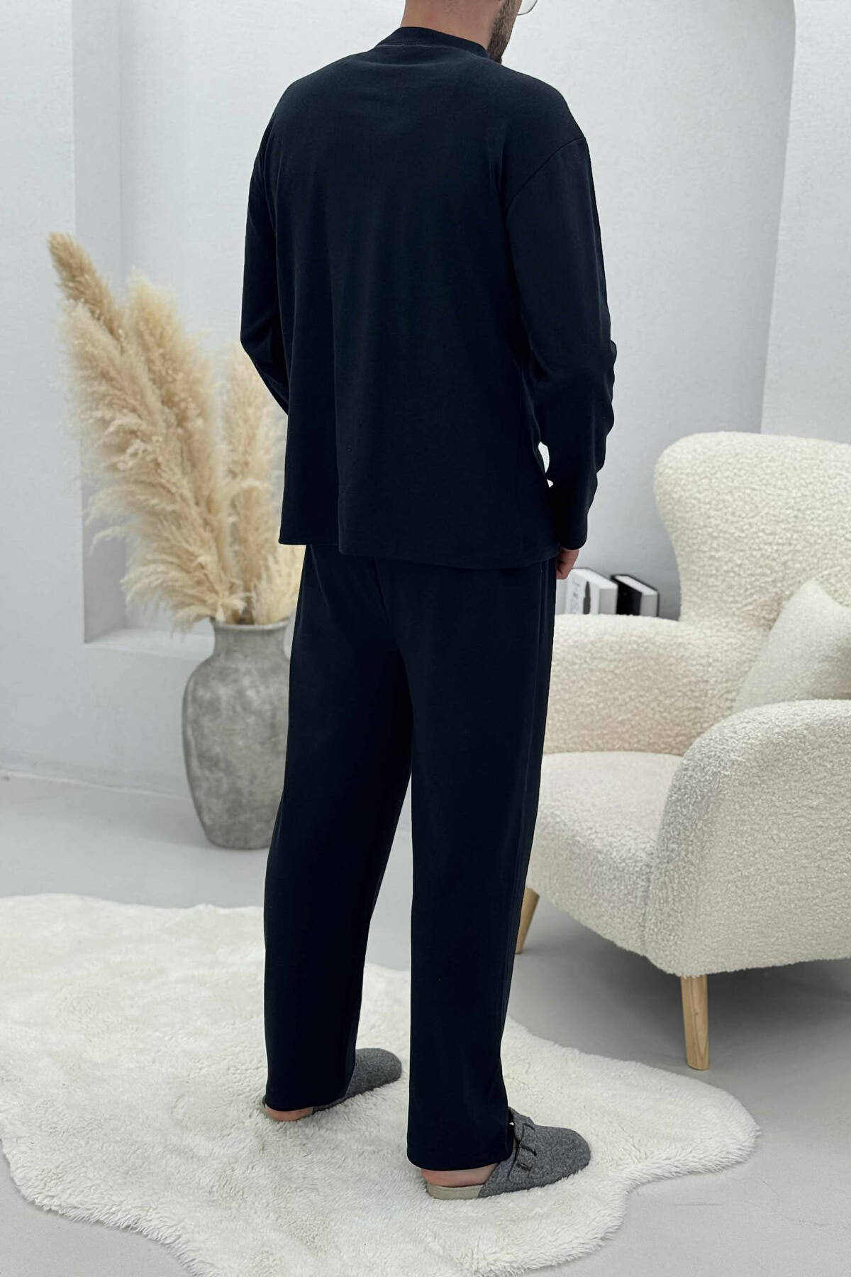 SET PIZHAMESH BLUZË+TUTA DY NGJYRËSHE PËR MESHKUJ NË NGJYRË GRI TË ERRËT
