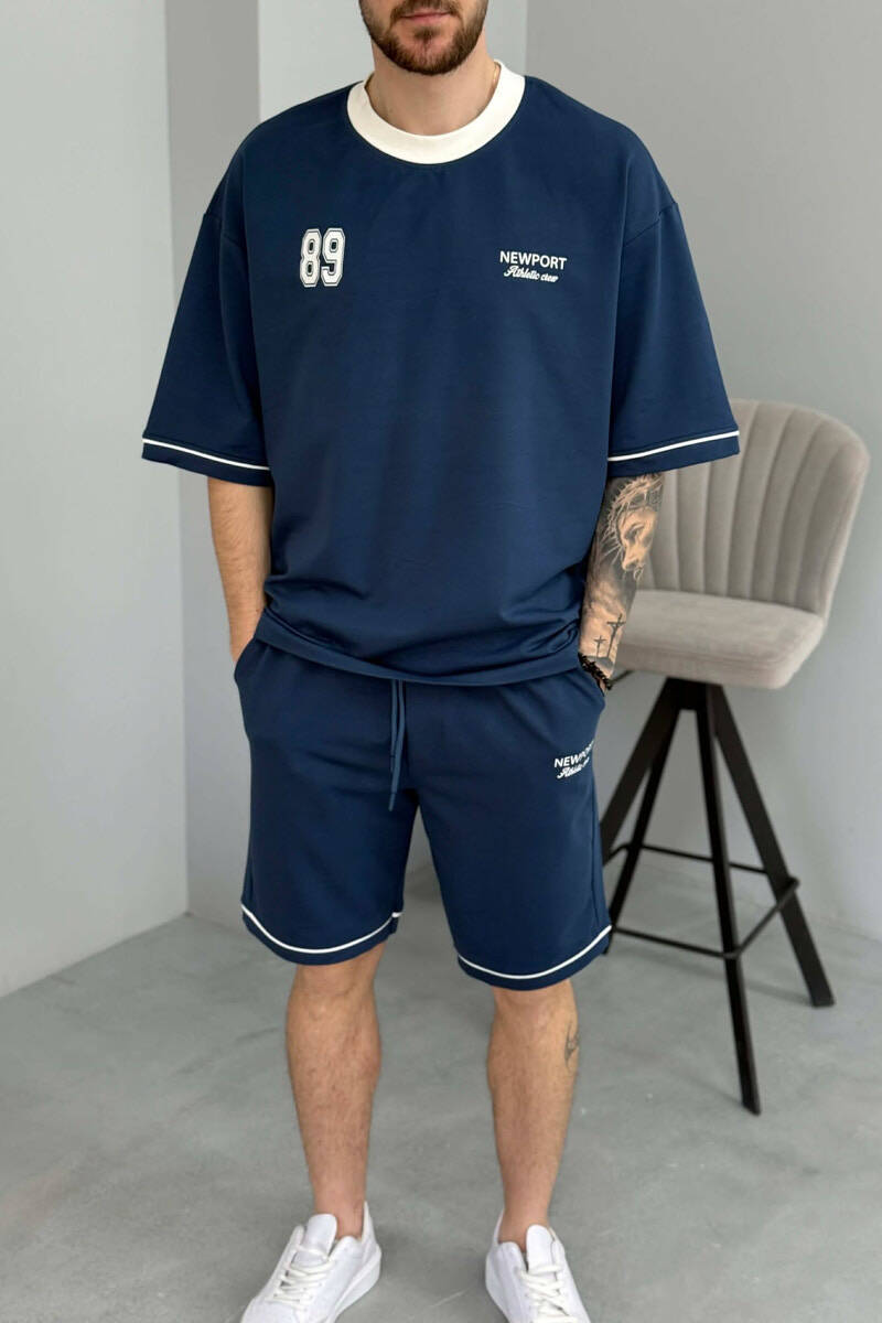 SET T-SHIRT ME SHKRIM PARA & PAS + TUTA TE SHKURTRA PER MESHKUJ NE NGJYRE BLU
