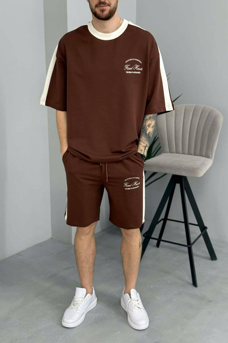 SET T-SHIRT ME SHKRIME TE VOGLA + TUTA TE SHKURTRA PER MESHKUJ NE NGJYRE KAFE