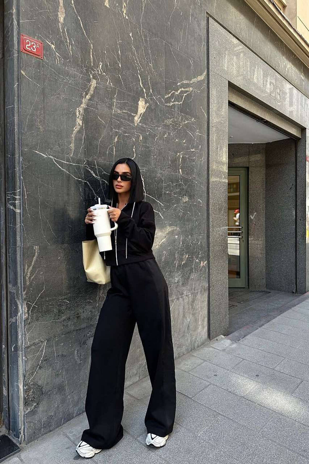 Set Xhaketë Dhe Tuta Për Femra Në Ngjyrën E Zezë