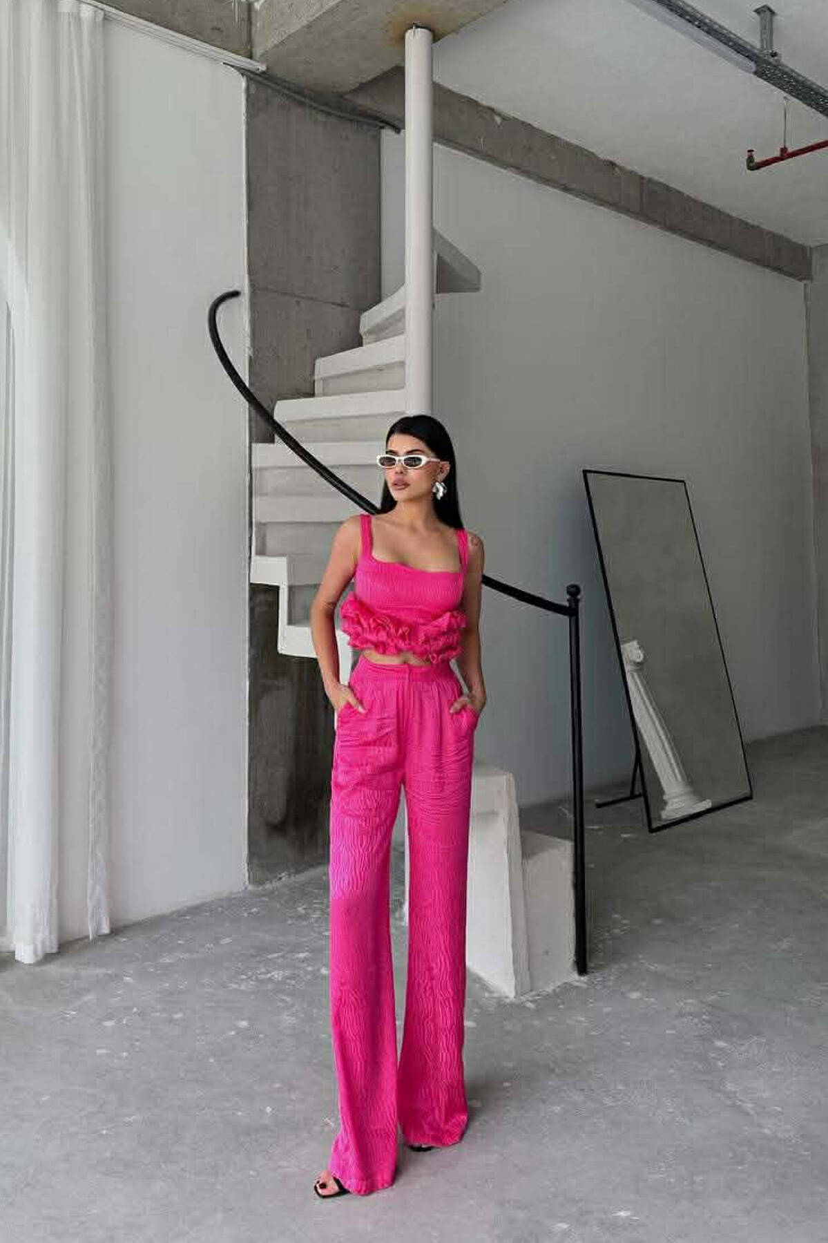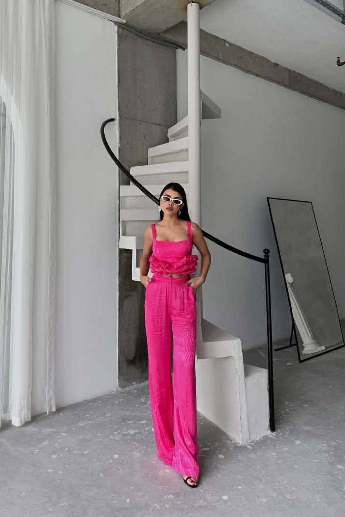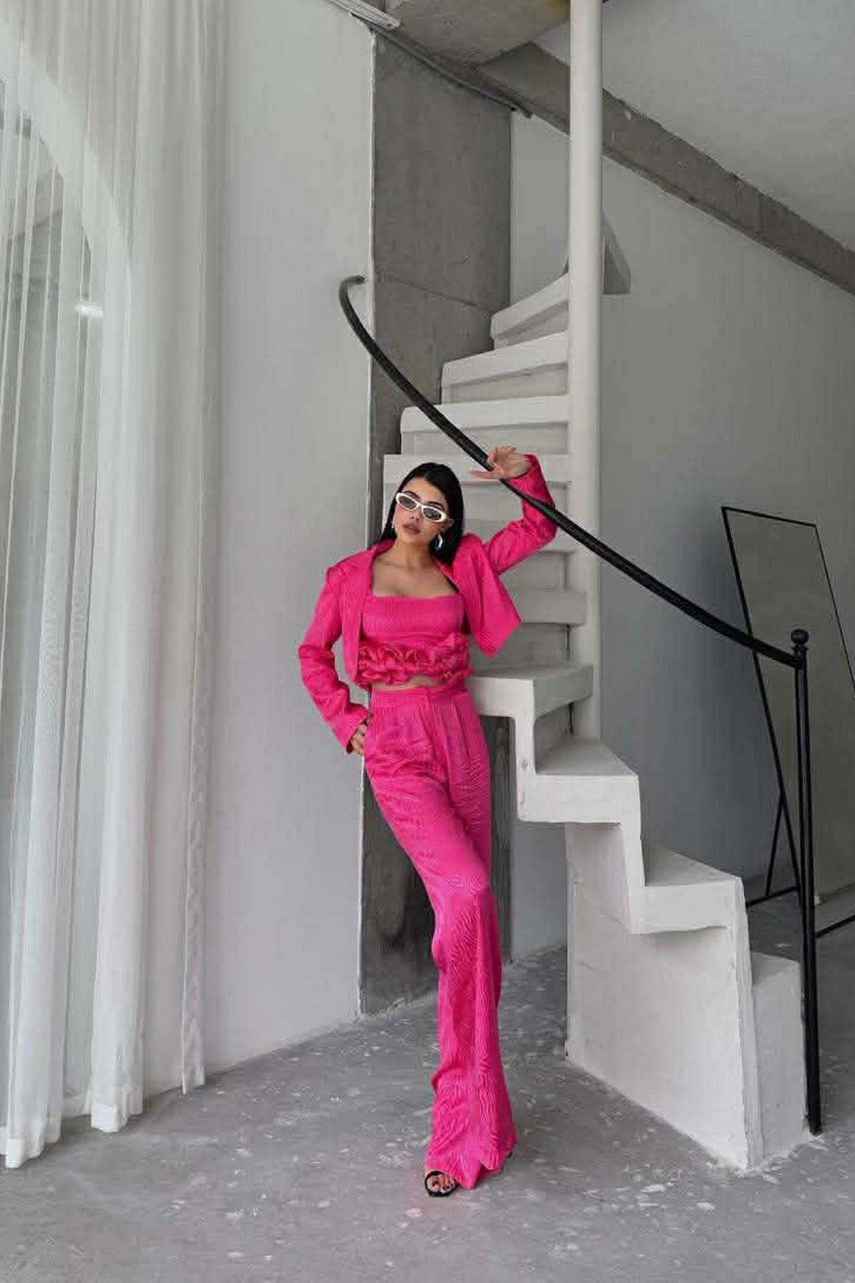 SET XHAKETE E SHKURTER+ KANATIERE+PANTALLONA TE GJERA PER FEMRA NE NGJYRE CIKLAMI