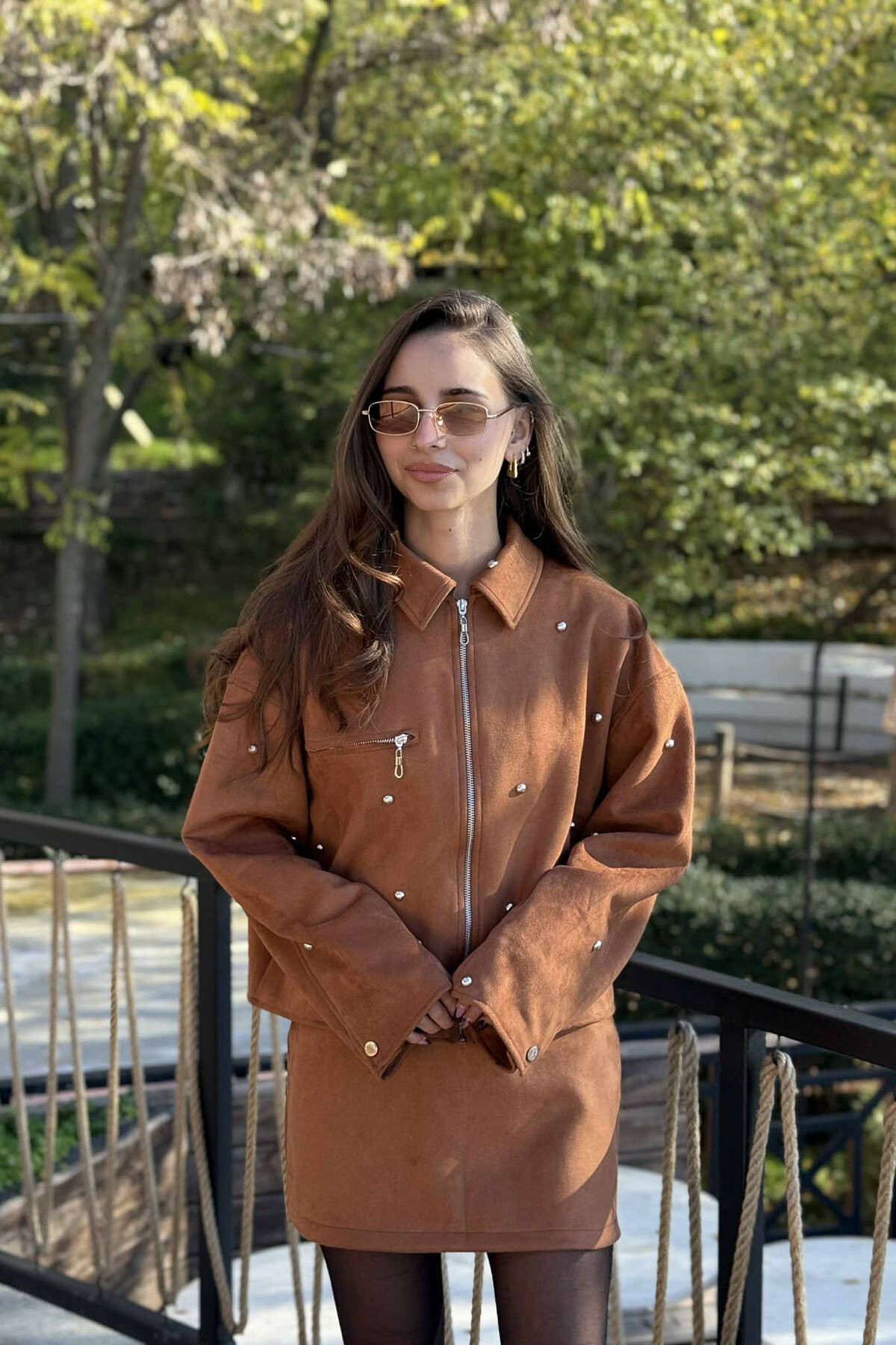 SET XHAKETË ME DETAJE GURËSH+FUND PËR FEMRA NË NGJYRË KAFE