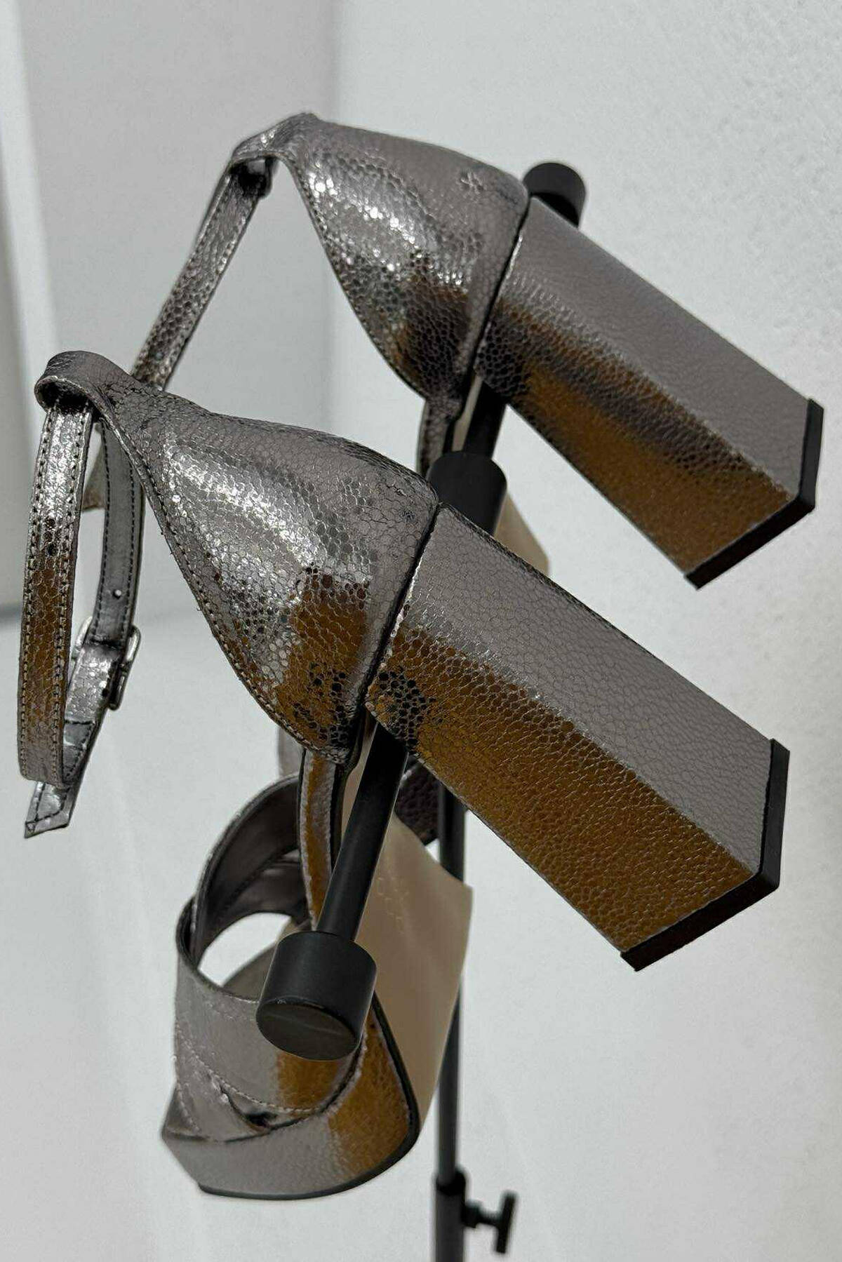 SHINY CROSSED STRAPS WOMEN HEELED SANDALS SILVER/ARGJEND