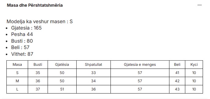 Size chart