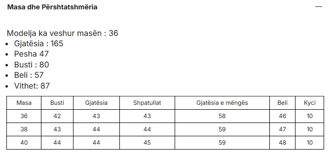 Size chart