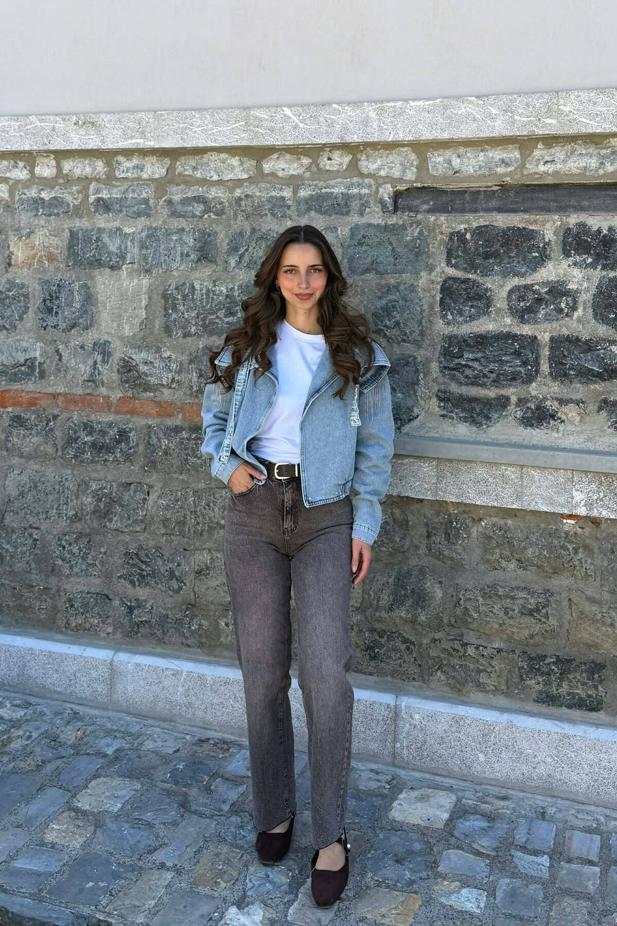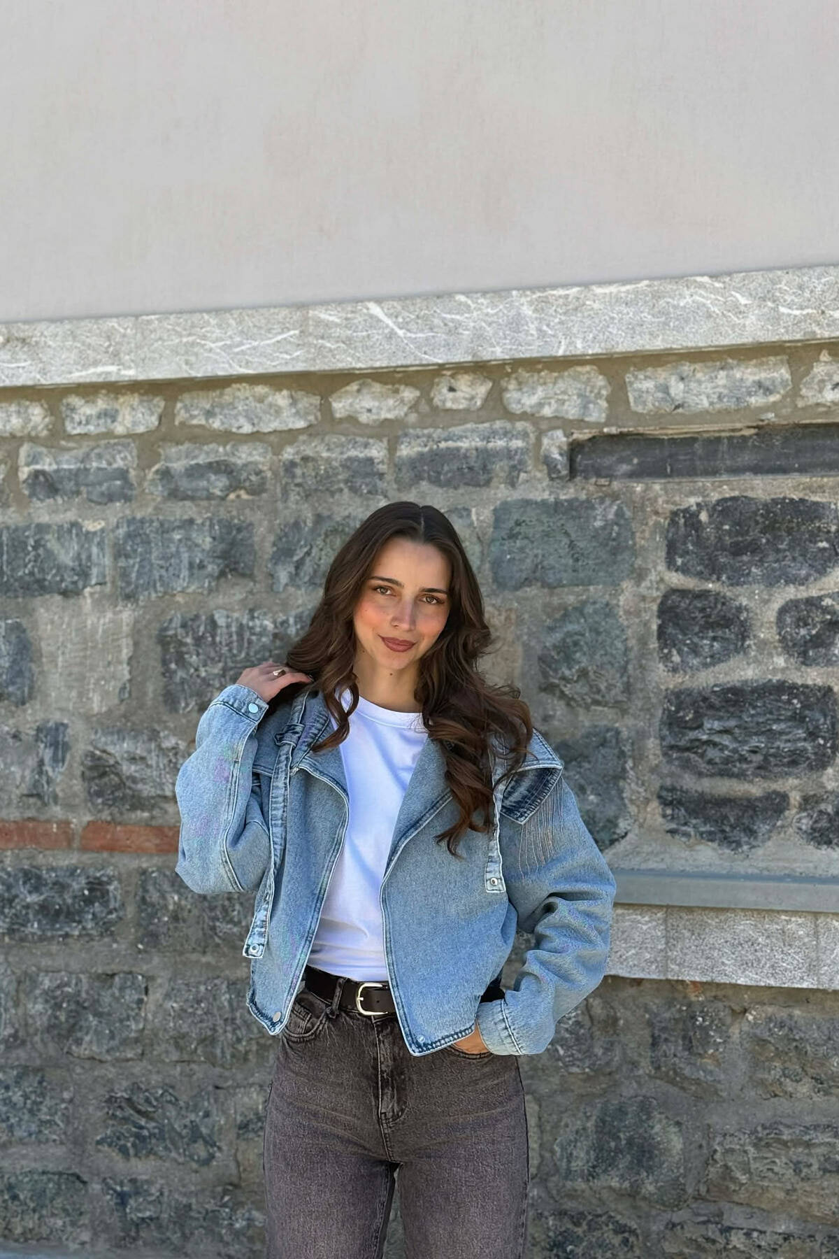 SHINY STONES DETAIL DENIM WOMAN JACKET LIGHTBLUE/BZ