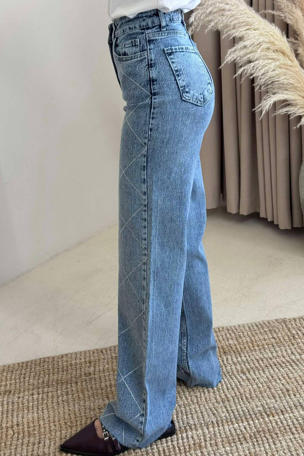 SHINY STONES DETAIL WIDE LEG WOMEN JEANS BLUE/BLU
