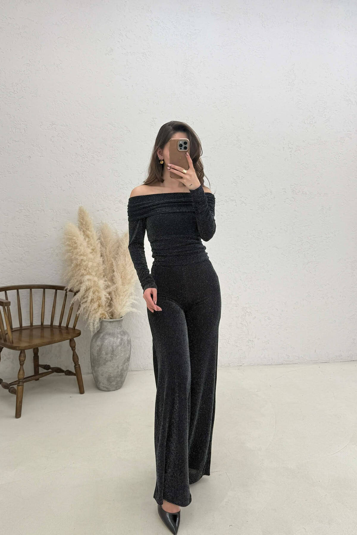SHINY SWEATSHIRT + TROUSERS WOMAN SET BLACK/ E ZEZE