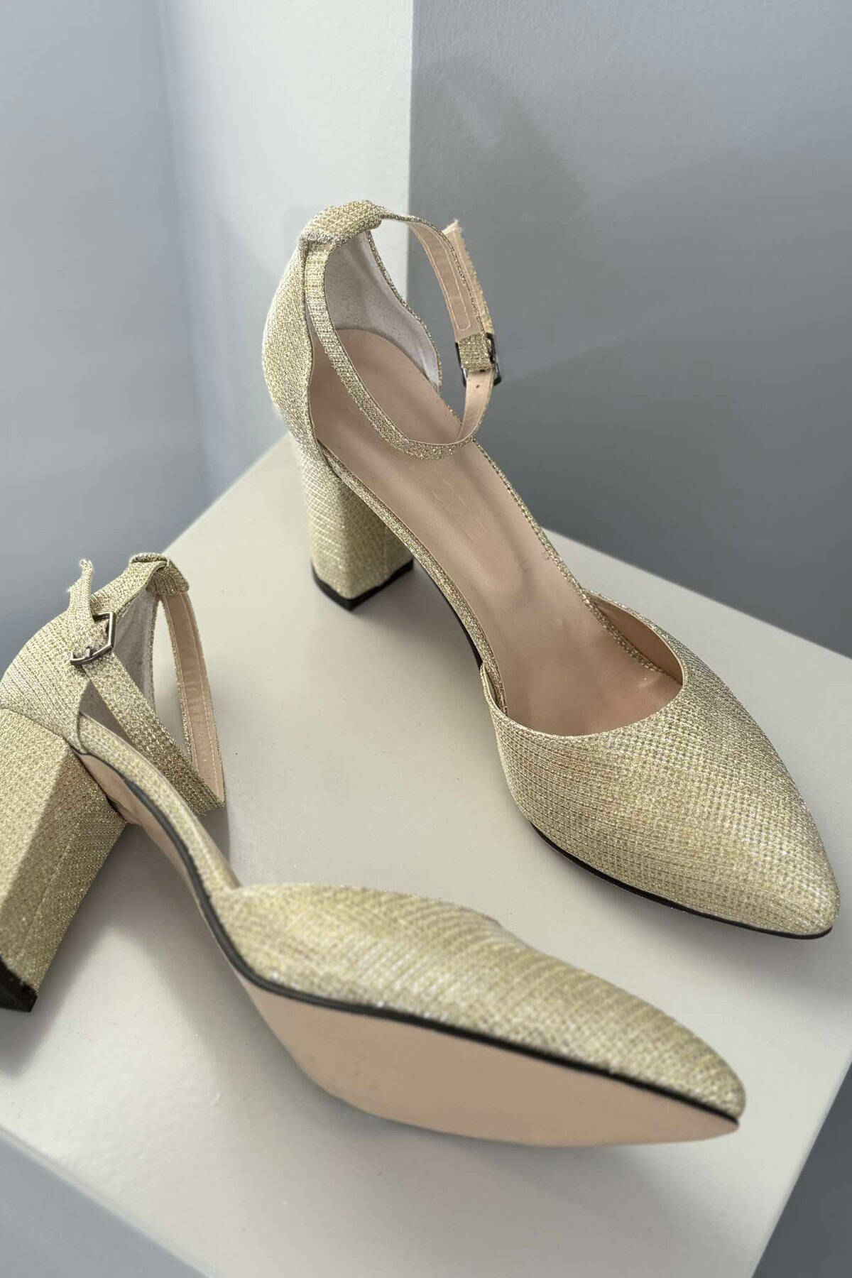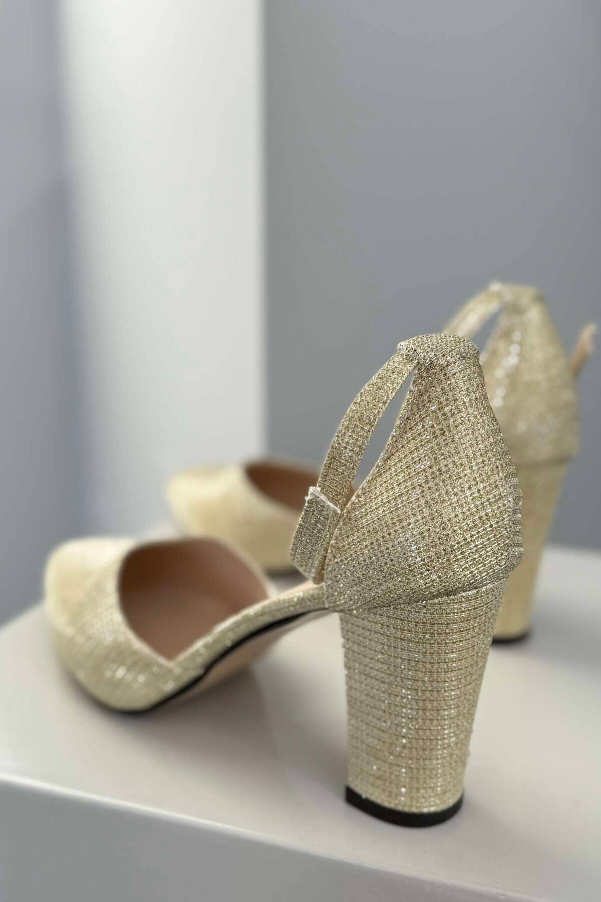 SANDALE TË SHNDRITSHME ME TAKË PËR FEMRA NË NGJYRË GOLD
