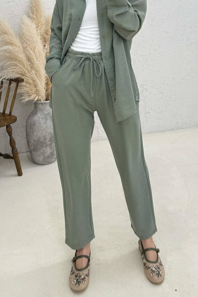SHIRT+TROUSERS LACINGS ONE COLOR WOMEN SET GREEN/JESHILE