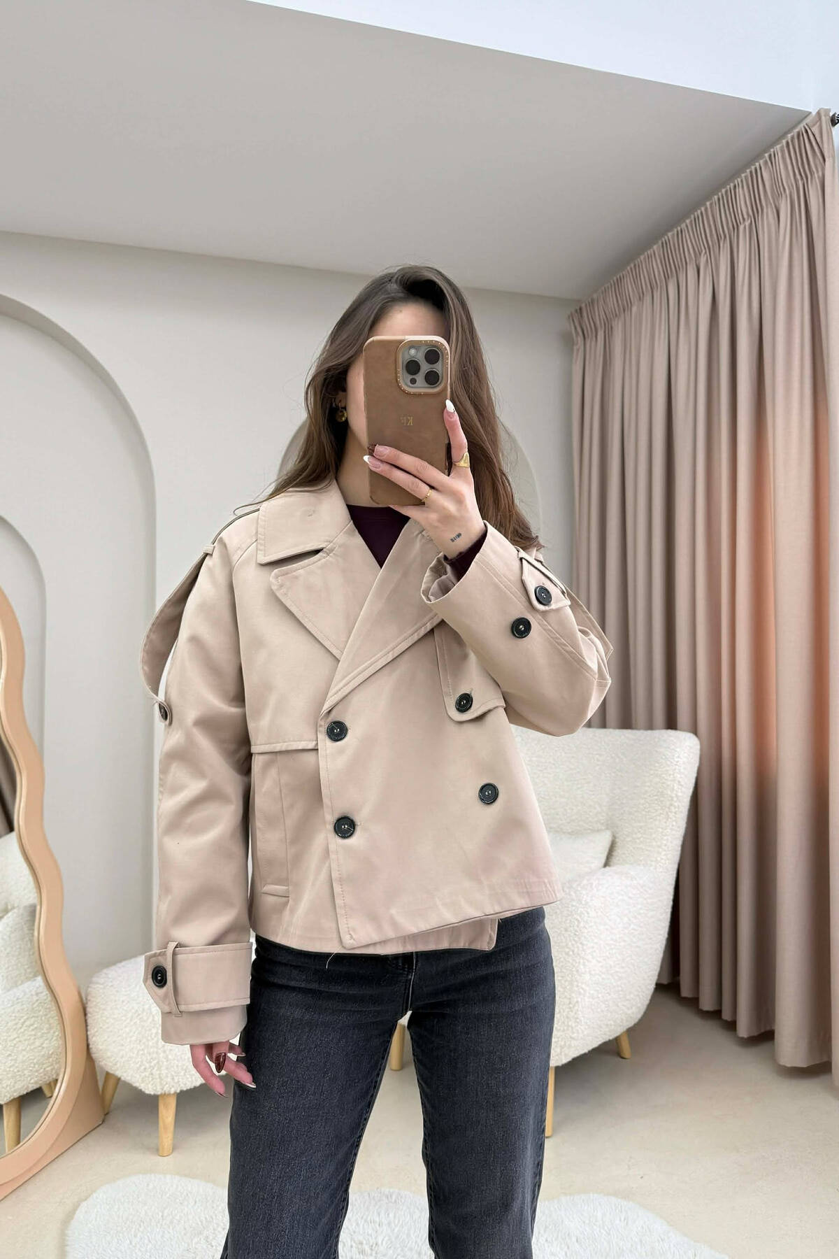 SHORT DOUBLE-BREASTED TRENCH WOMEN COAT BEIGE/BEZHE