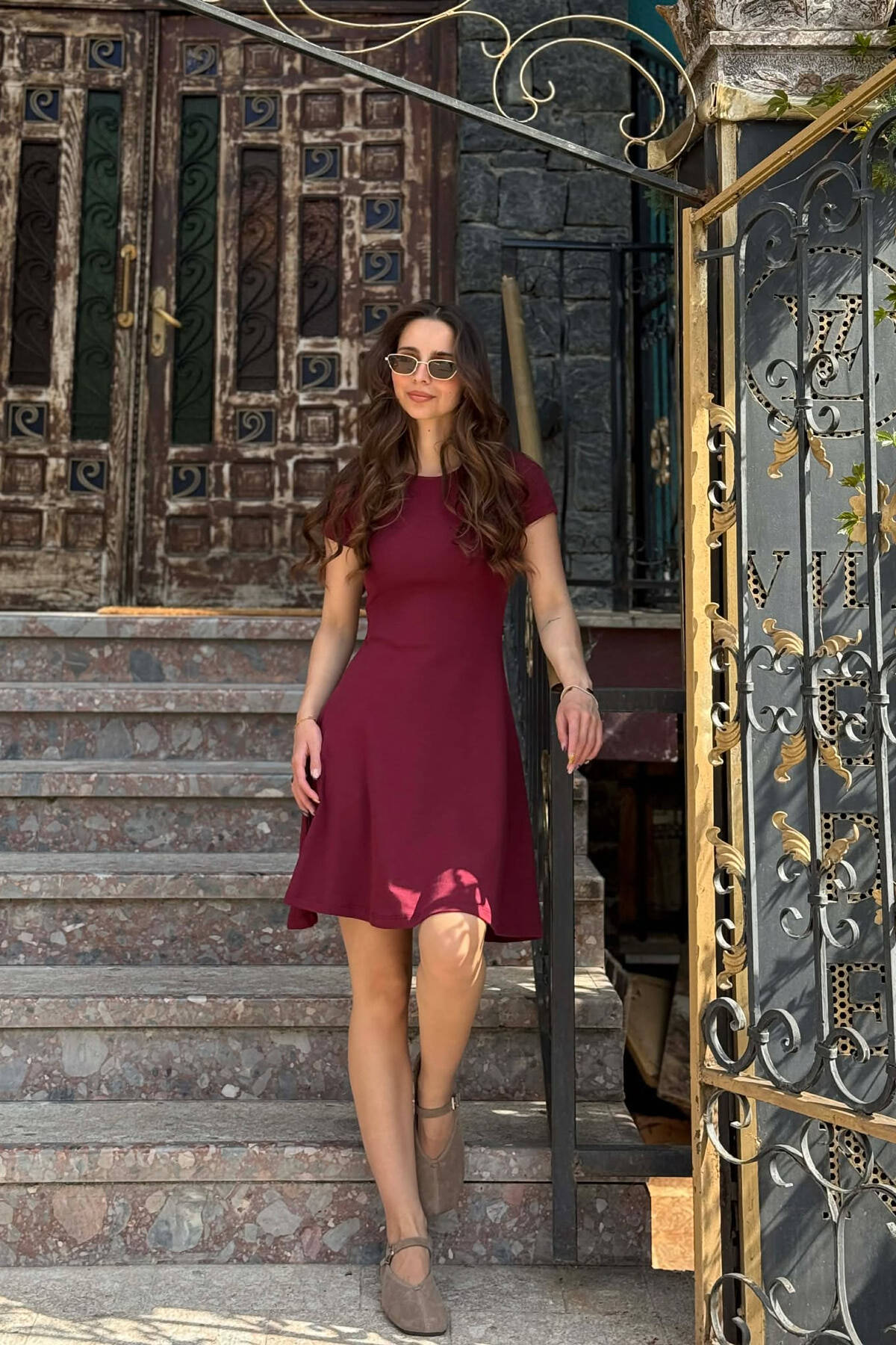 SHORT SLEEVE ONE COLOR WOMAN DRESS BURGUNDY/VISHNJE