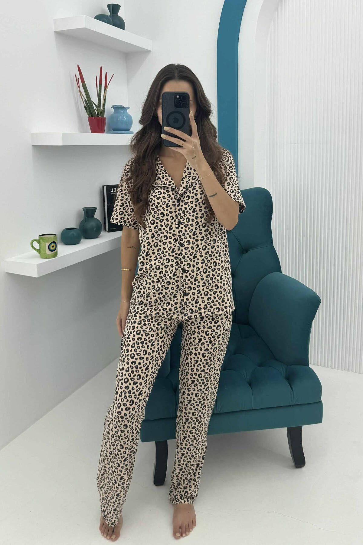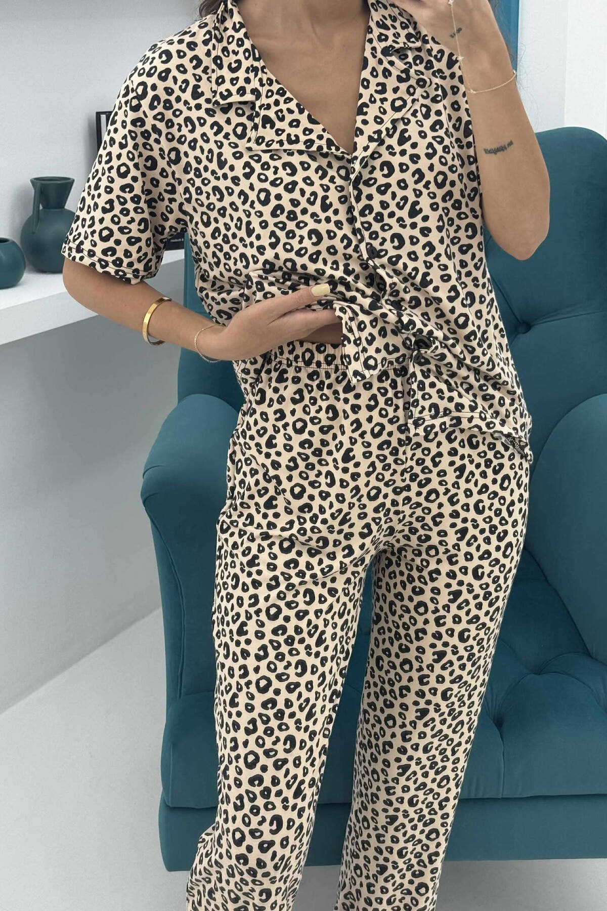 SHORT SLEEVE SHIRT+TROUSERS WOMEN PYJAMAS LEO/LEOPARD