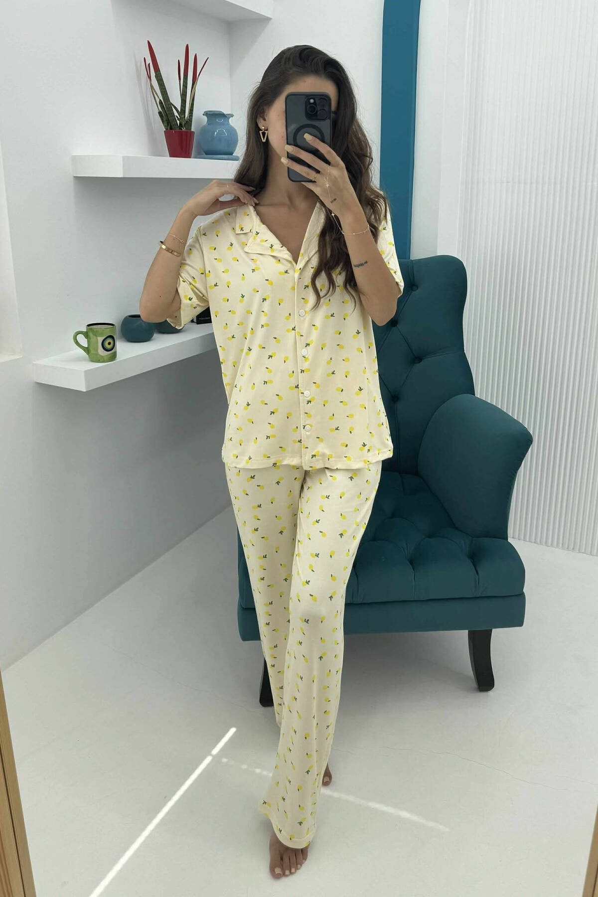 SHORT SLEEVE SHIRT+TROUSERS WOMEN PYJAMAS YELLOW/E VERDHE