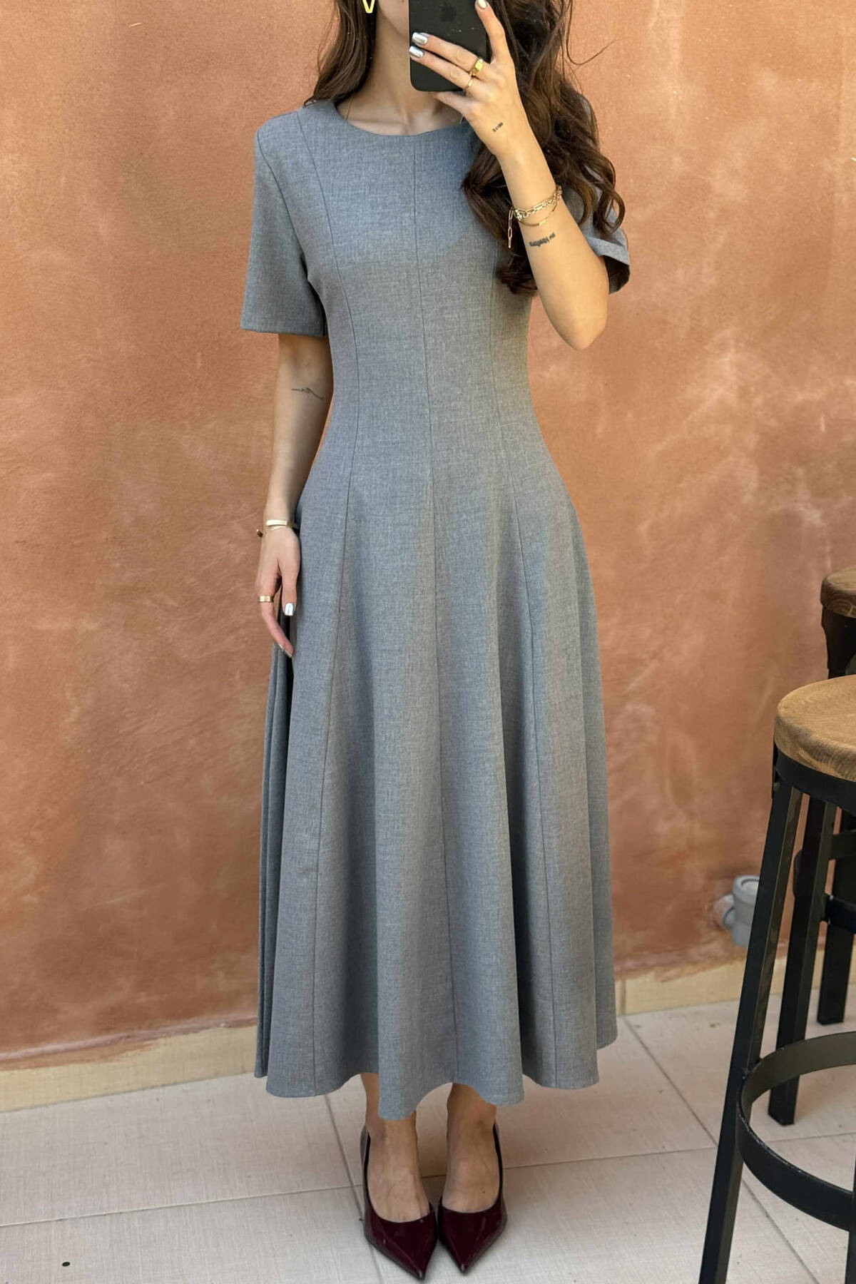 SHORT SLEEVE SIMPLE WOMEN DRESS GREY/GRI