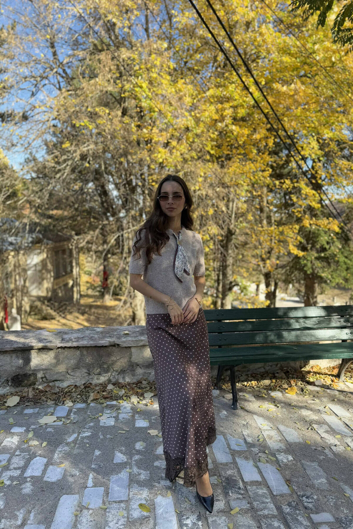 ONE COLOR LACE DETAIL WOMAN SWEATER BROWN/KAFE