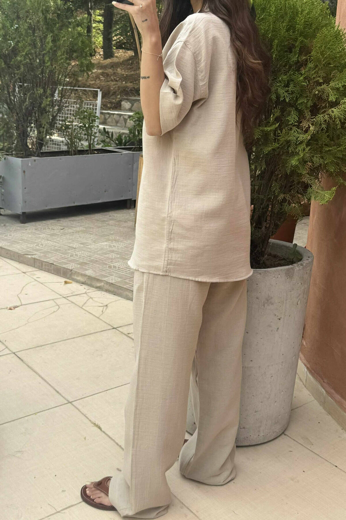 SHORT SLEEVES SHIRT+TROUSERS WOMEN SET BEIGE/BEZHE