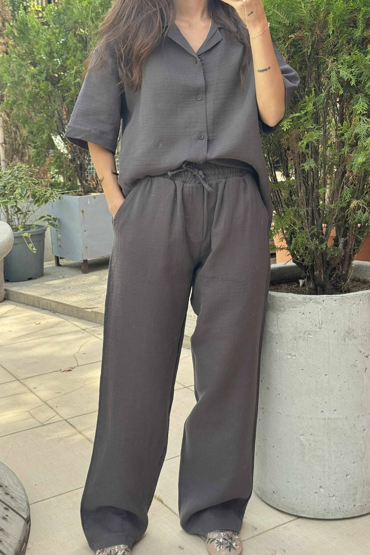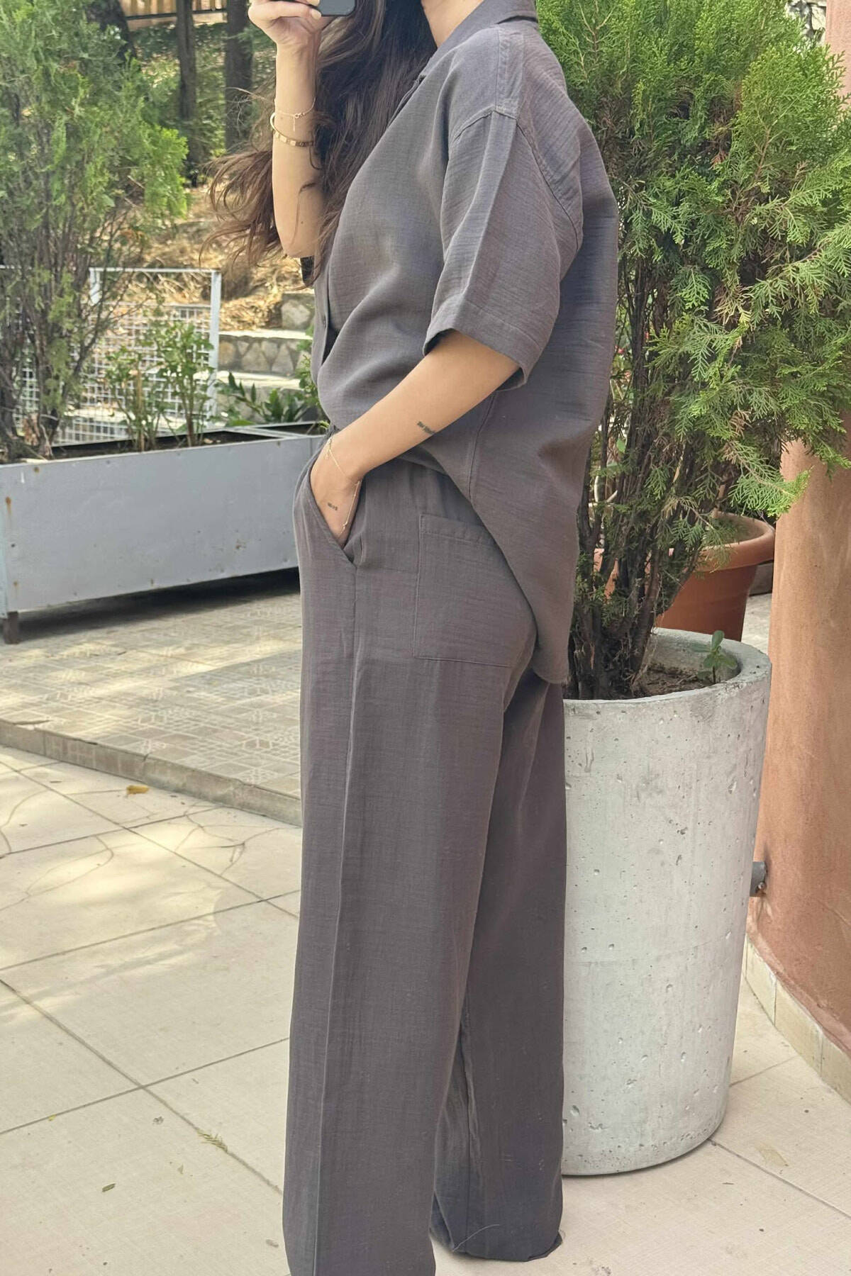 SHORT SLEEVES SHIRT+TROUSERS WOMEN SET DARK GREY/GEE
