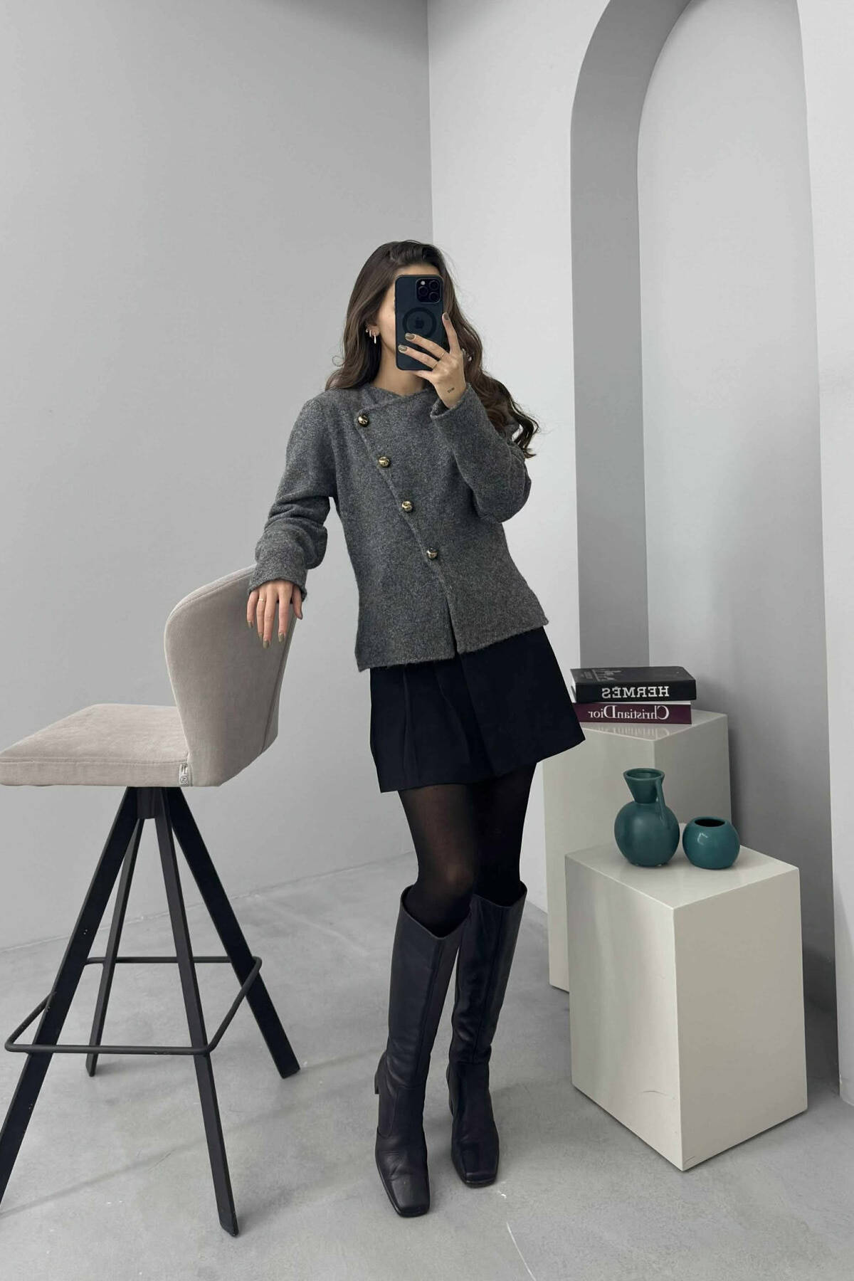 SIDE BUTTONED ONE COLOR WOMEN CARDIGAN GREY/GRI