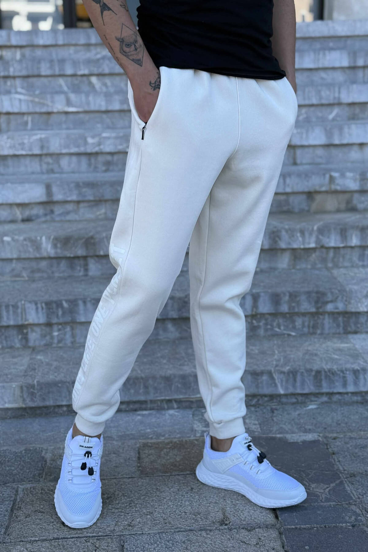 SIDE WRITTINGS FLUFFY MEN JOGGERS CREAM/KREM