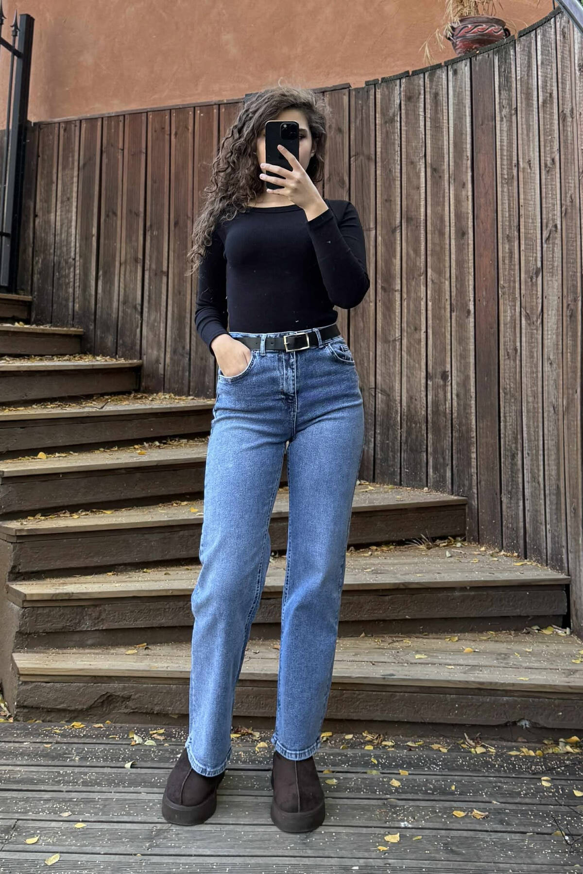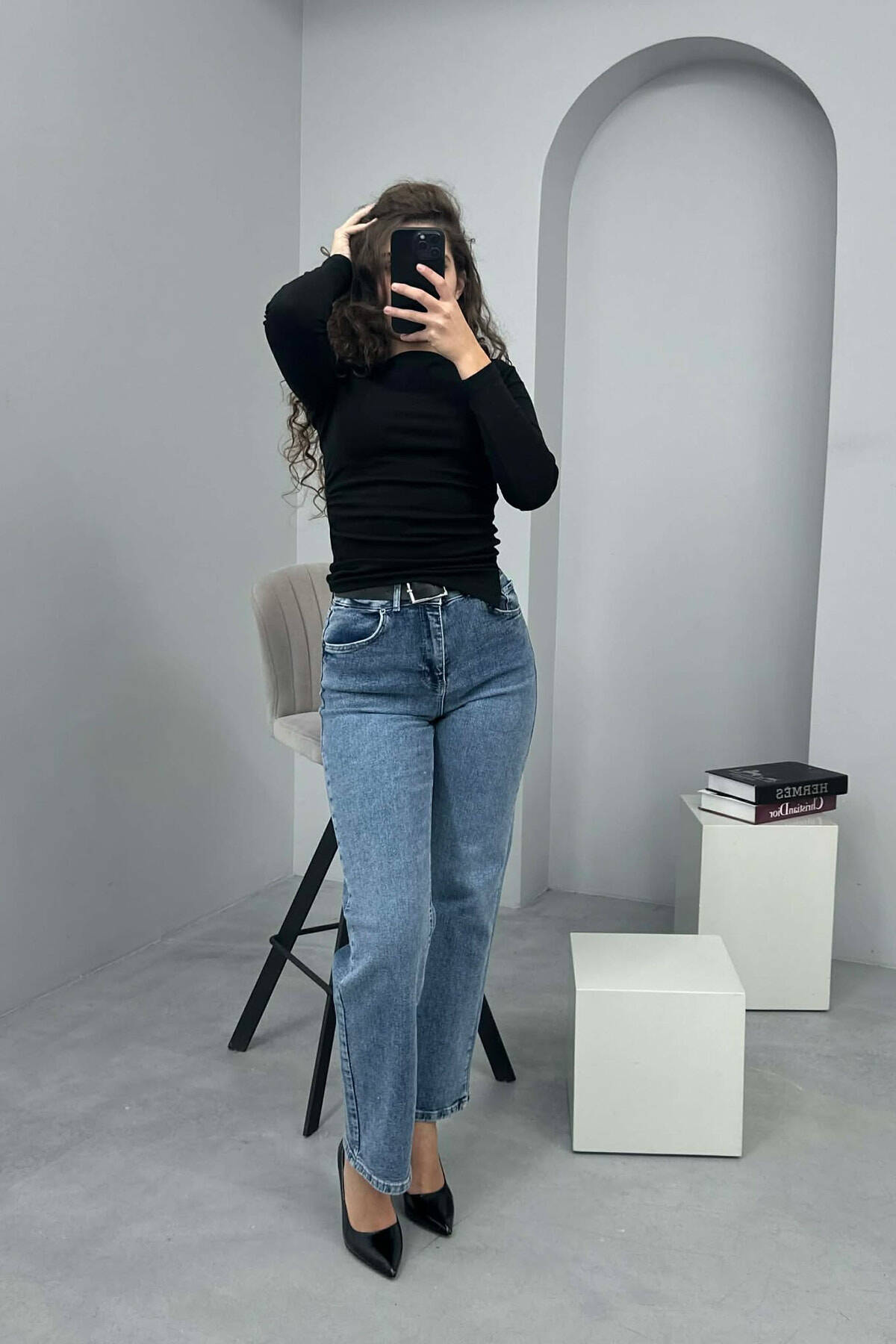 SIMPLE BELTED WOMEN JEANS LIGHTBLUE/BZ