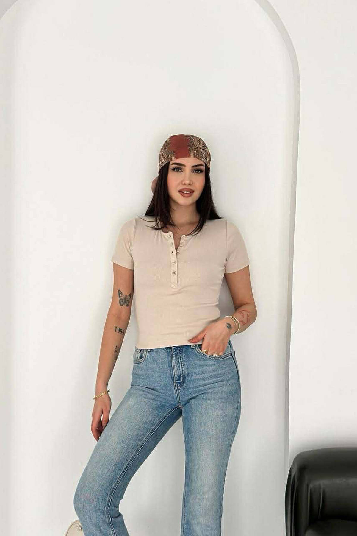 SIMPLE BUTTONS WOMAN T-SHIRT BEIGE/BEZHE