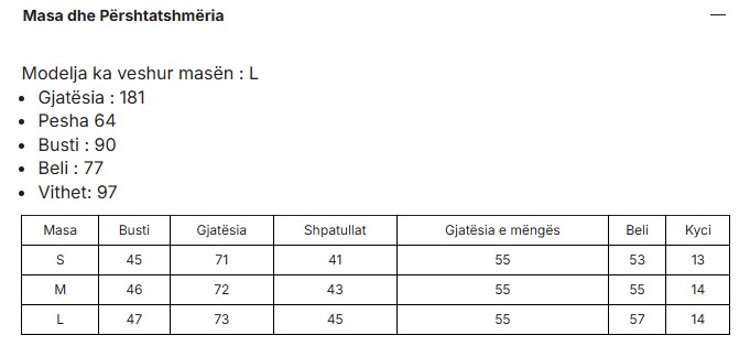 Size chart