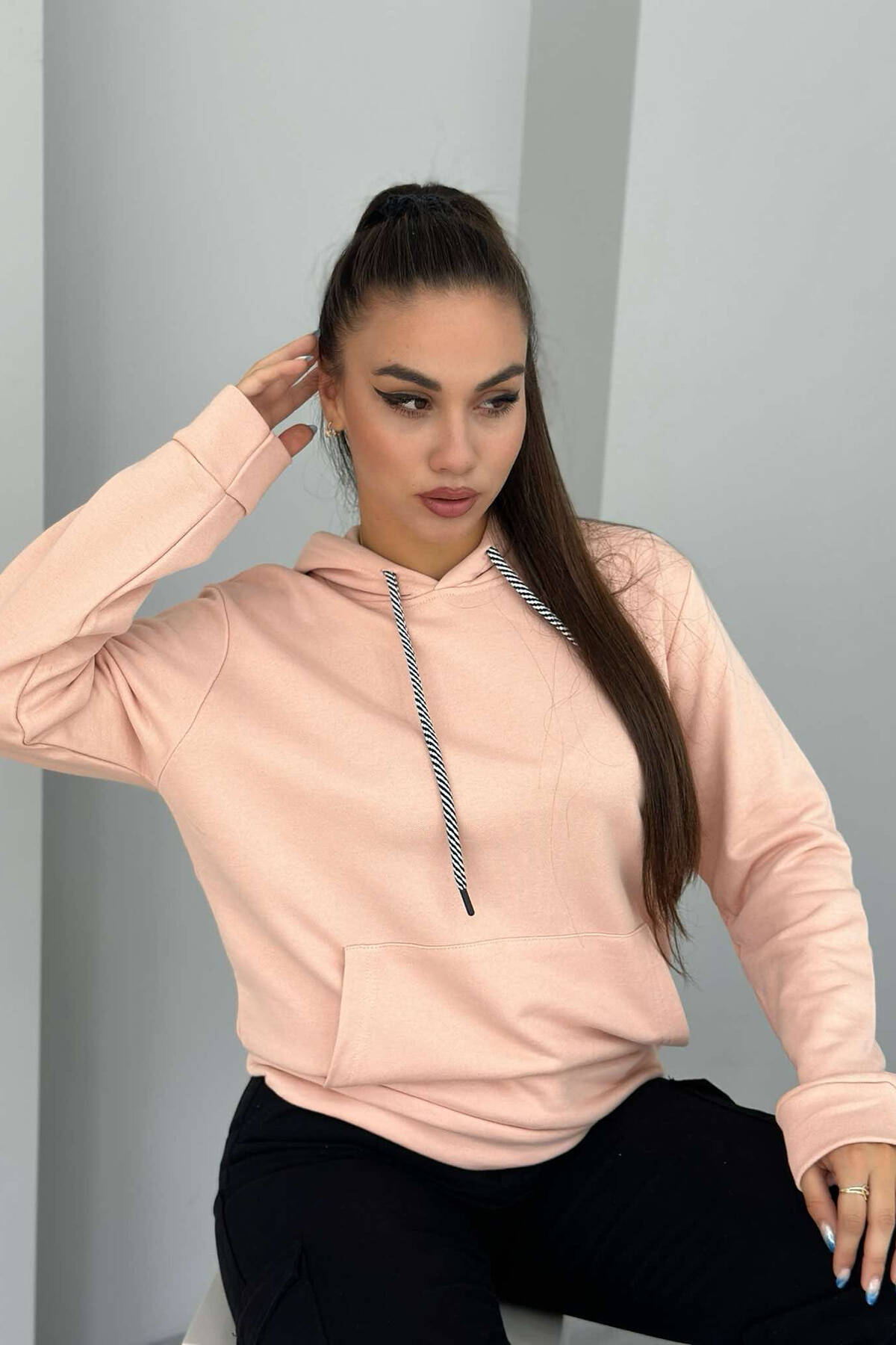 SIMPLE COTTON HOOD WOMAN HOODIE POWDER/PUDER