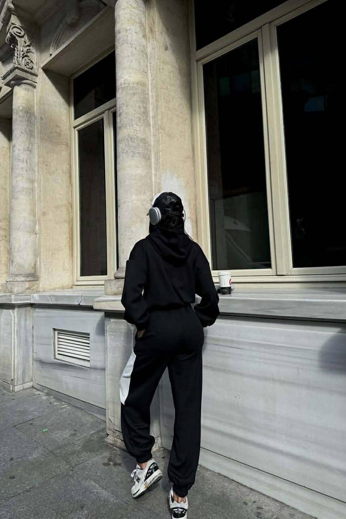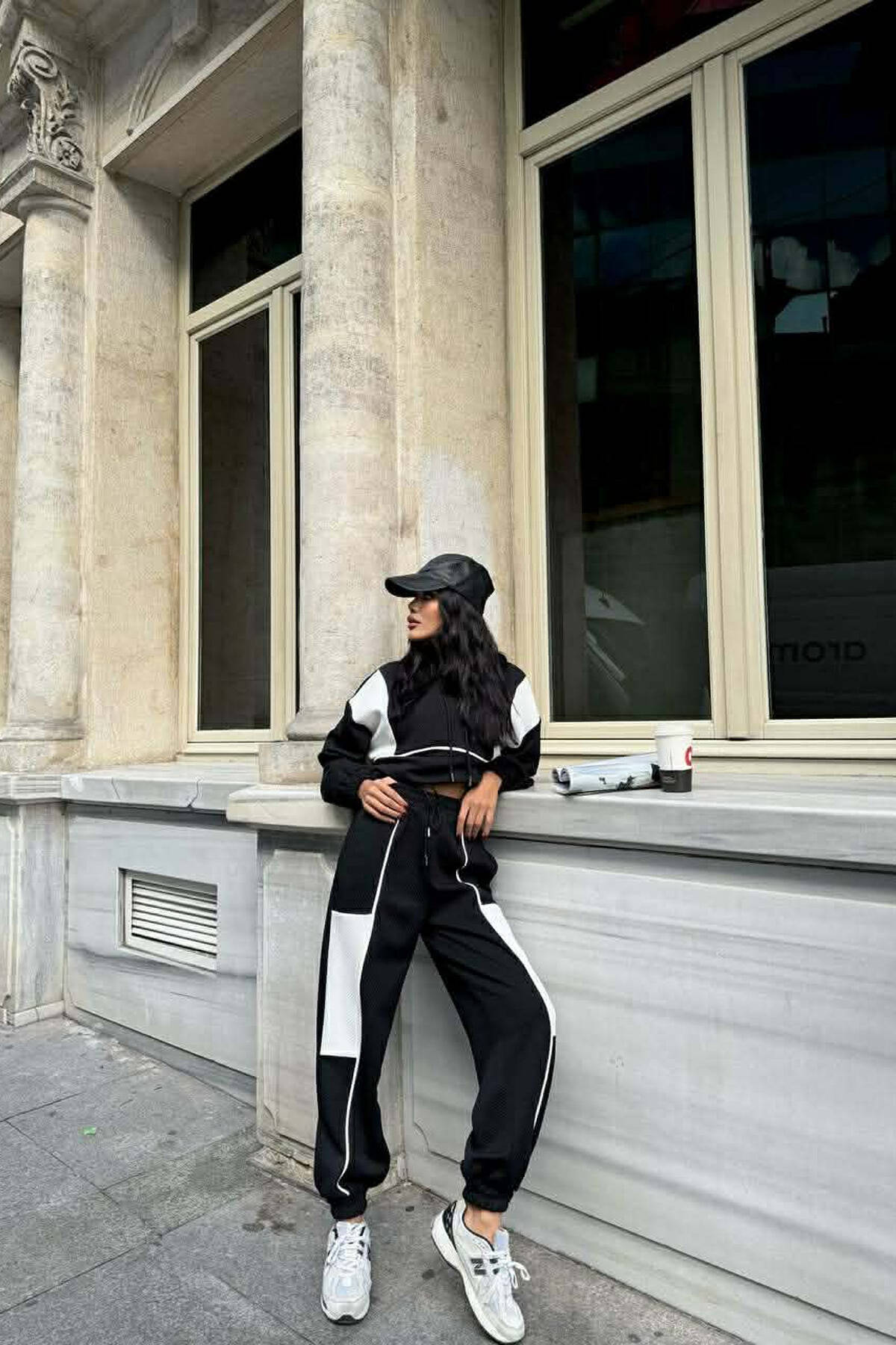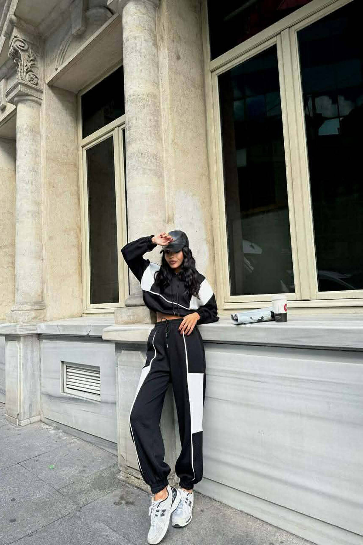 SIMPLE CROPPED HOODIE+JOGGERS WOMEN SET BLACK/ E ZEZE
