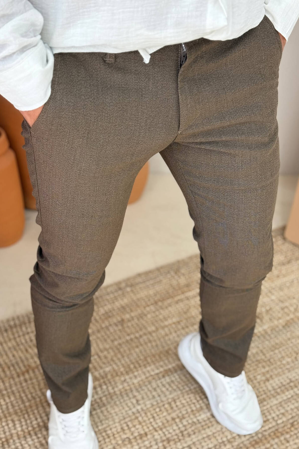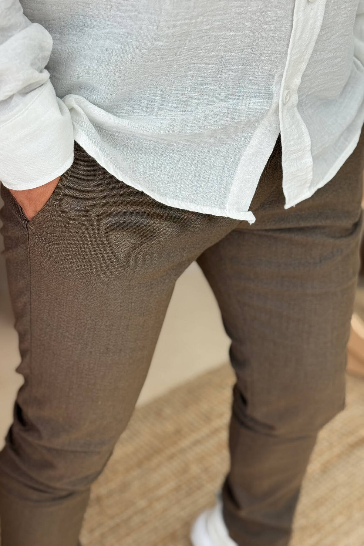 PANTALLONA NJË NGJYRËSHE ME DIZAJN TË THJESHTË PËR MESHKUJ NË NGJYRËN KAFE
