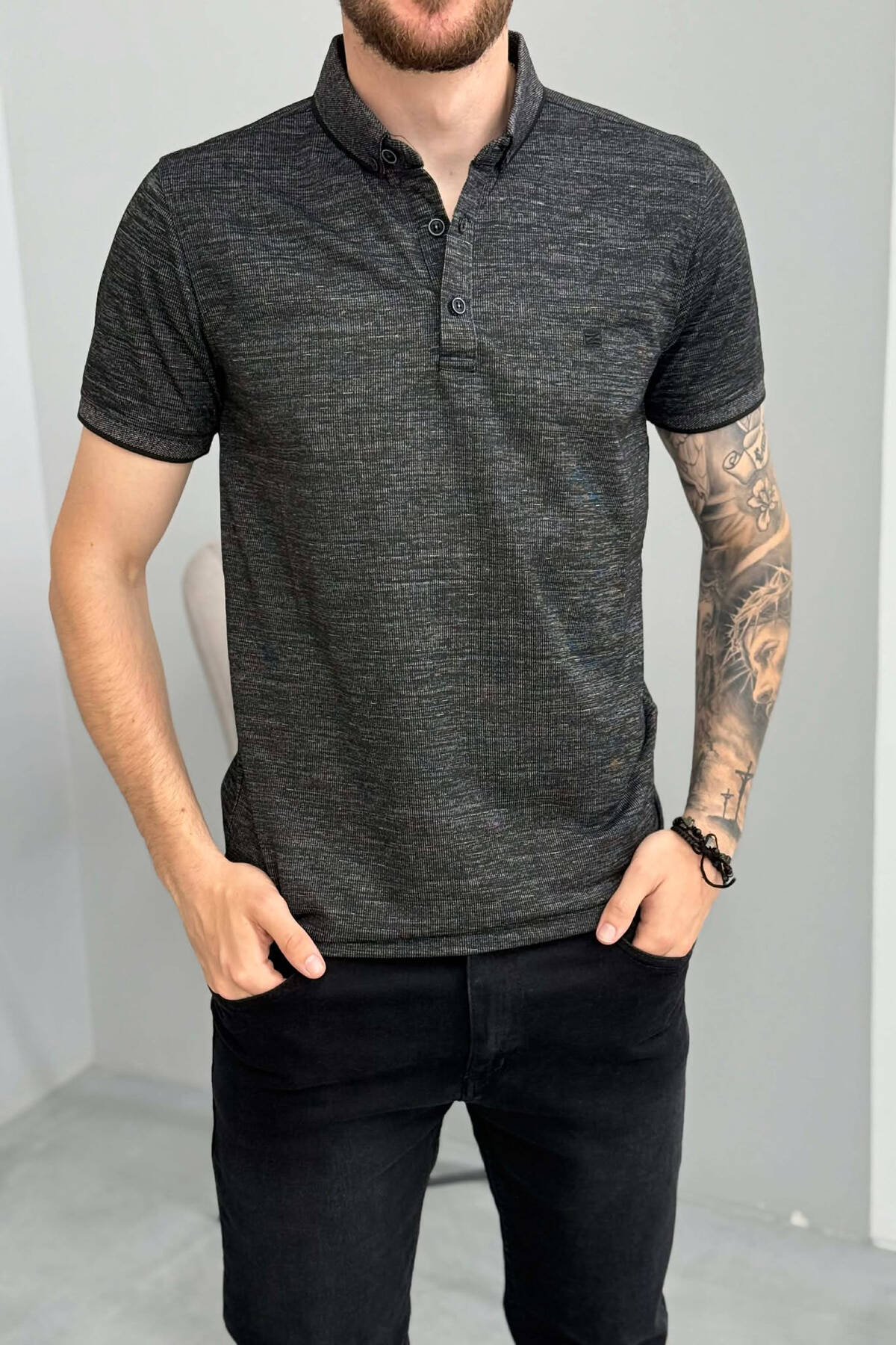 SIMPLE DESIGN POLO NECK MEN T-SHIRT BLACK/ E ZEZE