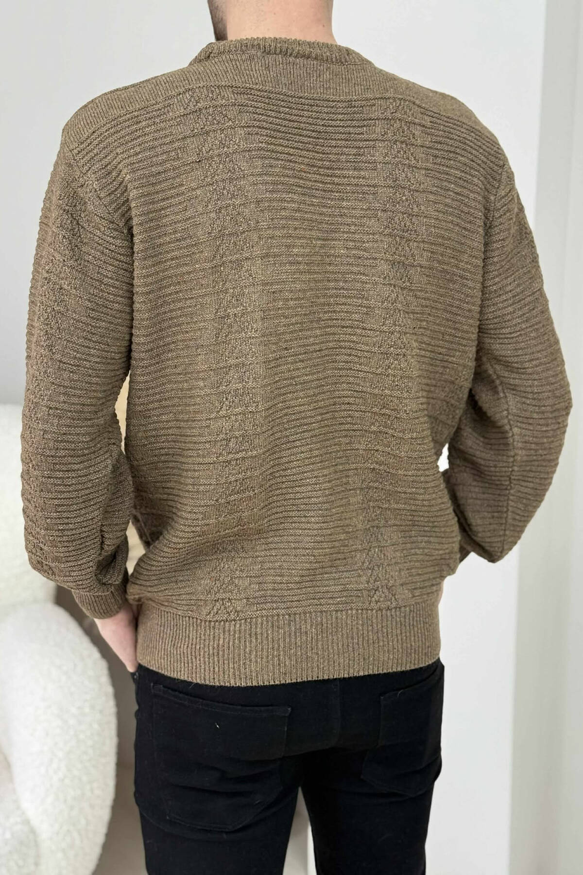 SIMPLE DESING KNITTED MEN SWEATER DARK BROWN/KAE