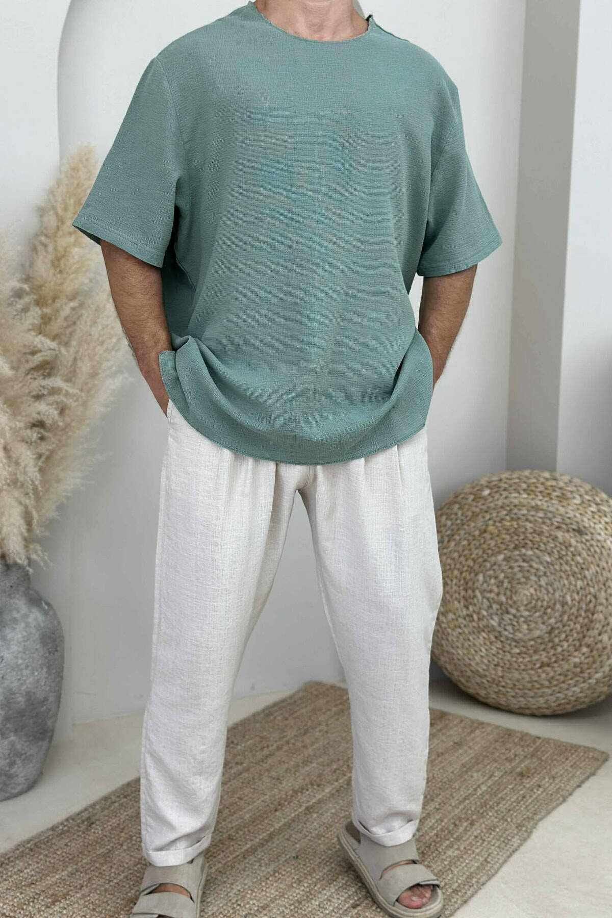 SIMPLE DETAILED MEN T-SHIRT MINT/MENTE