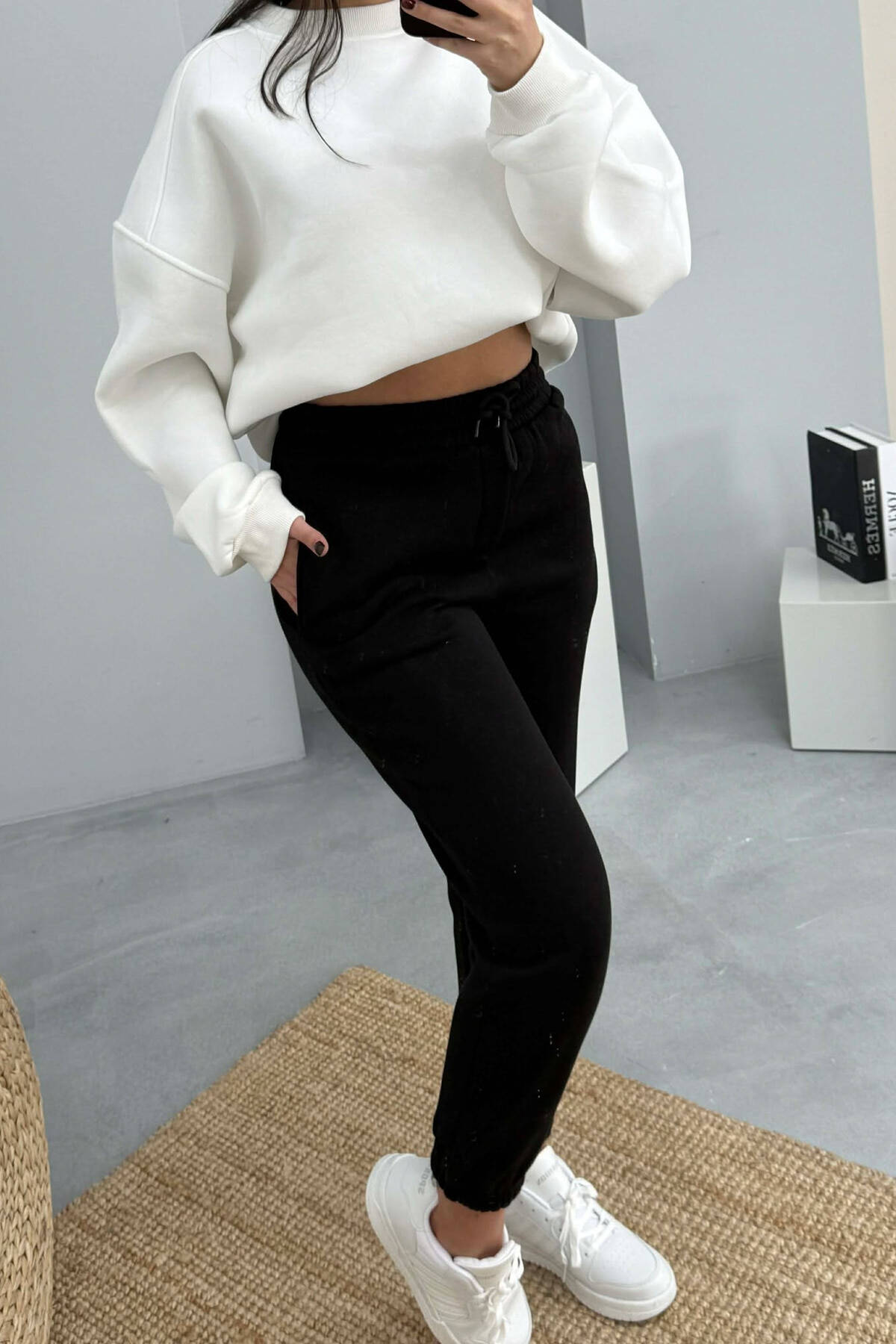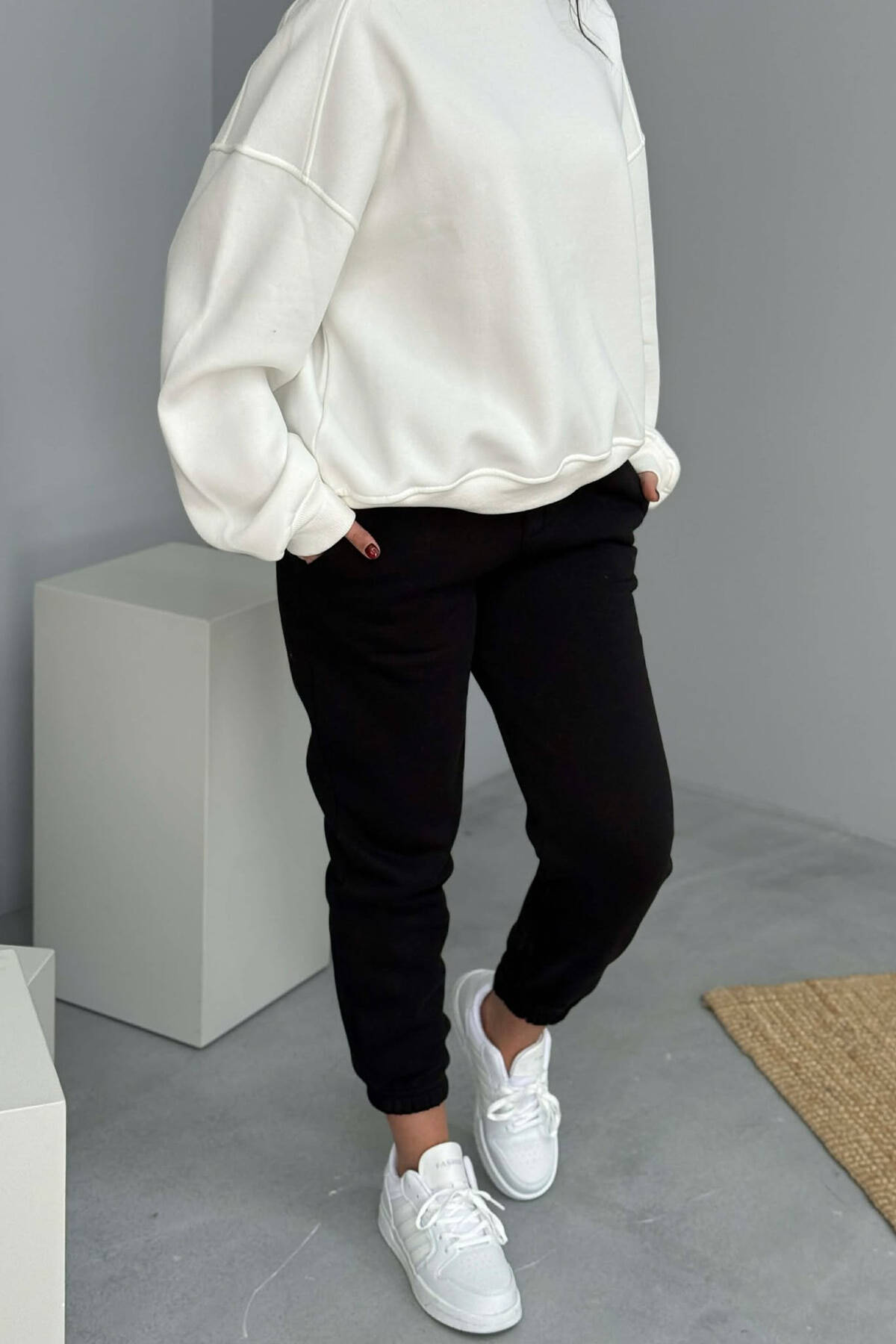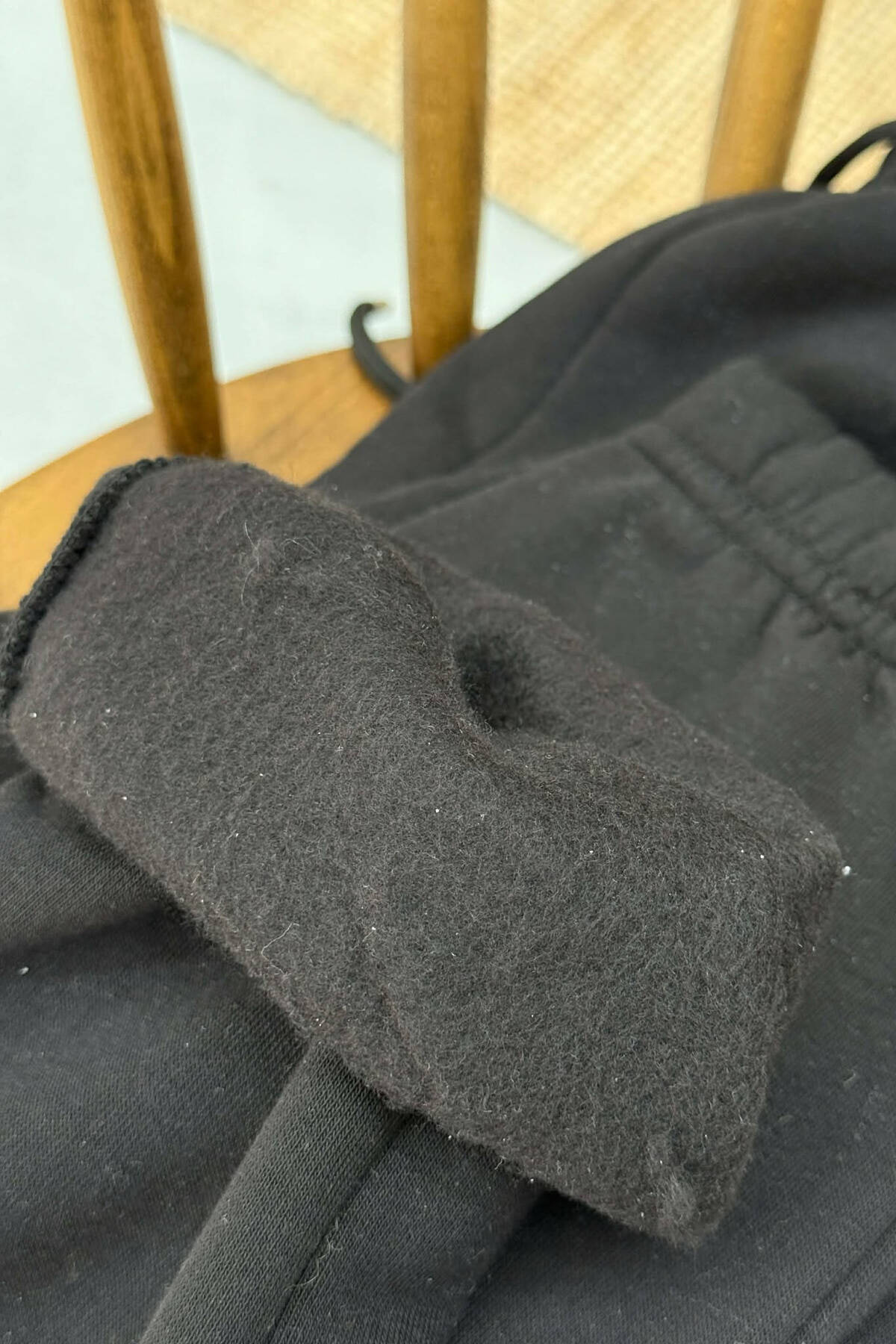 ONE COLOR SIMPLE FLUFFY WOMEN SWEATPANTS BLACK/ E ZEZE