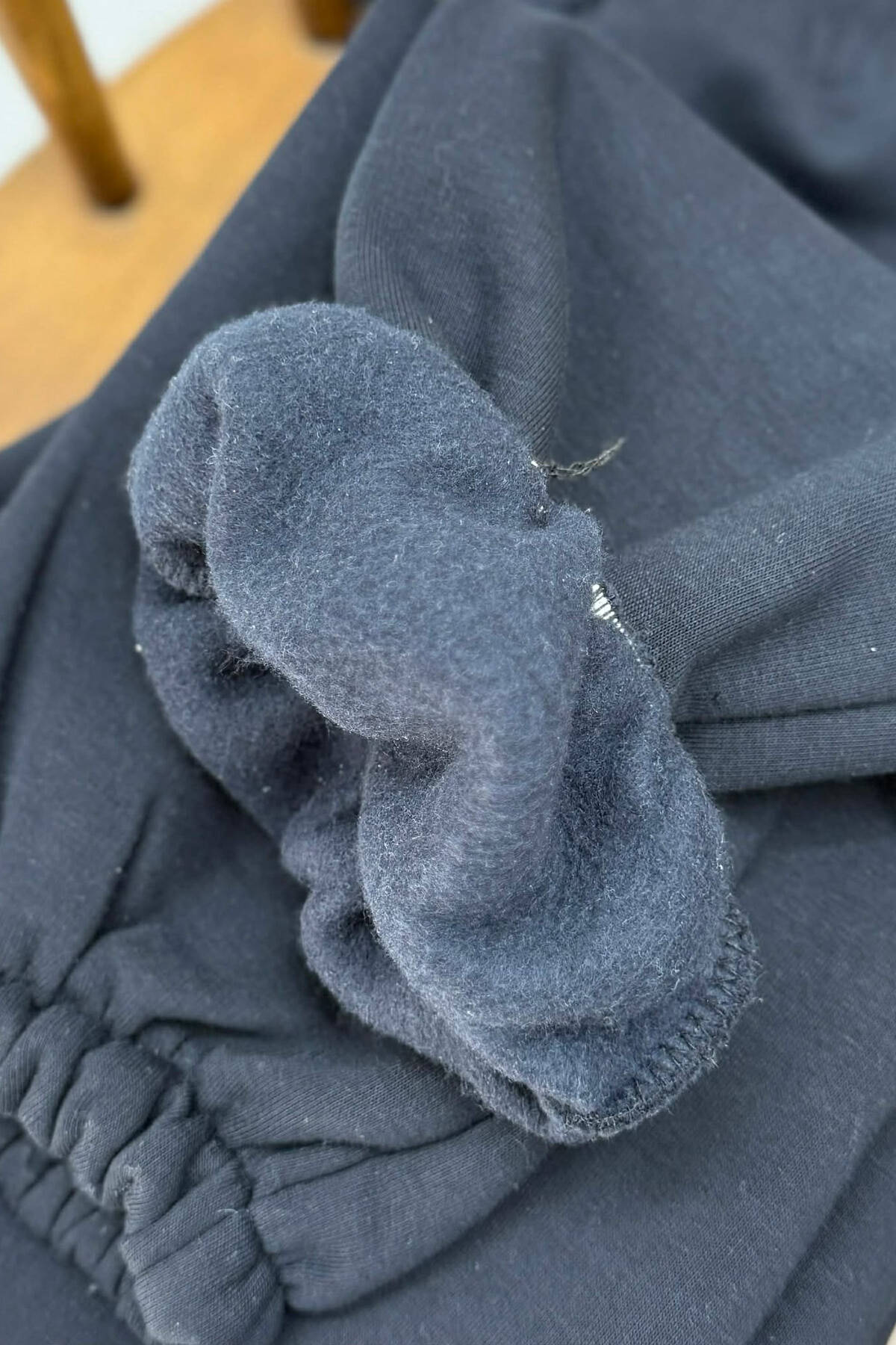 SIMPLE ELASTIC WAIST LACINGS FLUFFY WOMEN JOGGERS DARK BLUE/BEE