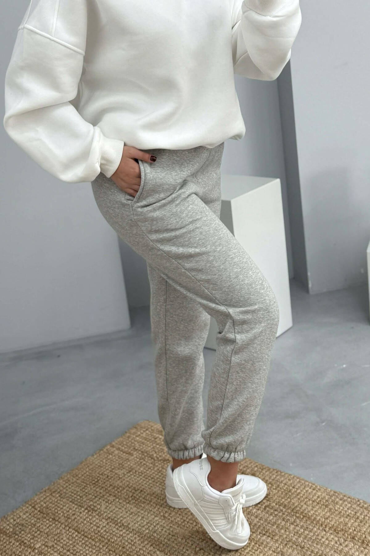 SIMPLE ELASTIC WAIST LACINGS FLUFFY WOMEN JOGGERS LIGHT GREY/GZ